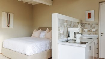 Das in der Nähe des Pools gelegene Gästehaus verfügt über ein in sich geschlossenes Studio-Schlafzimmer mit Dusche en suite und Küchenzeile.