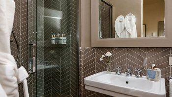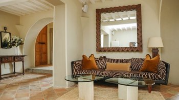 Im Tower können die Gäste die OFFENER GRUNDRISS Wohnbereiche nutzen. Hochwertiges und weiches Mobiliar mit viel Charme durch große Glasfenster. Ähnlich wie im Haybarn befindet sich auch auf dieser Etage ein Zweibett-Schlafzimmer mit Dusche en suite und französischen Türen, die in die Gärten führen. Auf der ersten Etage gibt es einen zusätzlichen Wohnbereich und drei Super-Kingsize-Doppelzimmer, alle mit eigenem Bad; zwei Duschbäder und ein Badezimmer mit freistehender Badewanne und separater ebenerdiger Dusche. Auf der zweiten Etage befindet sich das Hauptschlafzimmer mit separatem Ankleidebereich und Bad en suite.