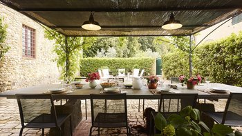 In der Nähe von Florenz im Chianti-Gebiet gelegen, ist Le Cascine eine wunderschöne historische Landvilla, die sich ideal für Gruppenreisen mit Familie und Freunden eignet. Dessen Anwesen wurde wunderschön restauriert und mit einer Kombination aus modernem und authentischem Dekor eingerichtet, gepaart mit charmanten Balkendecken und modernen Kunstwerken. Im Erdgeschoss können die Gäste durch die Eingangshalle gehen, um ein schönes offenes Grundriss Wohnzimmer mit einem Essbereich sowie eine voll ausgestattete Küche zu entdecken, die zur schattigen Essterrasse führt. Zwei Doppelschlafzimmer sind über ein paar Stufen erreichbar, jedes mit eigenem Bad ausgestattet. Im ersten Stock gibt es zwei weitere Orte zum Entspannen: eine Sitzecke und einen Flur mit gemütlichen Sesseln. Vier Doppelschlafzimmer und ein Einzelschlafzimmer sind ebenfalls vorhanden, jedes mit einem Duschbad en suite.