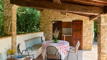 Mit all dem Charakter seiner Ursprünge aus dem 17. Jahrhundert und dem Komfort eines Familienhauses überlässt dieses alte Steinhaus nichts dem Zufall, wenn es um Entspannung geht. Denen luftigen Zimmer sind in einer bezaubernden Mischung aus Alt und Neu eingerichtet, mit farbenfrohen Kelims und Kunstwerken, die die ländliche Schlichtheit ergänzen. Jedes der vier Schlafzimmer der Villa verfügt über ein eigenes Bad und Klimaanlage. Deren Wohnzimmer im Herzen des Hauses mit seinen Fenstern zum Garten wird durch ein gemütliches Arbeits- / Wohnzimmer im oberen Stockwerk ergänzt, das am Herbstabende durch ein großes Kaminfeuer erwärmt wird. Neben dem schönen Swimmingpool in einem sehr privaten Garten verfügt ein gut gestaltetes Poolhaus über eine Dusche und WC, eine Küche und einen Grill und eine überdachte Sitz- und Essterrasse für lange, gemütliche Mittagessen. In der Nähe malerischer Städte in der Toskana und Umbrien, ist diese Idylle nur 1,5 km von Geschäften und Restaurants in der malerischen, ummauerten Stadt Lucignano entfernt. Denen Bäder wurden alle für die Saison 2024 renoviert. Dieser wunderschön von den Eigentümern geführte Unterkunft ist bei CV-Kunden sehr beliebt.