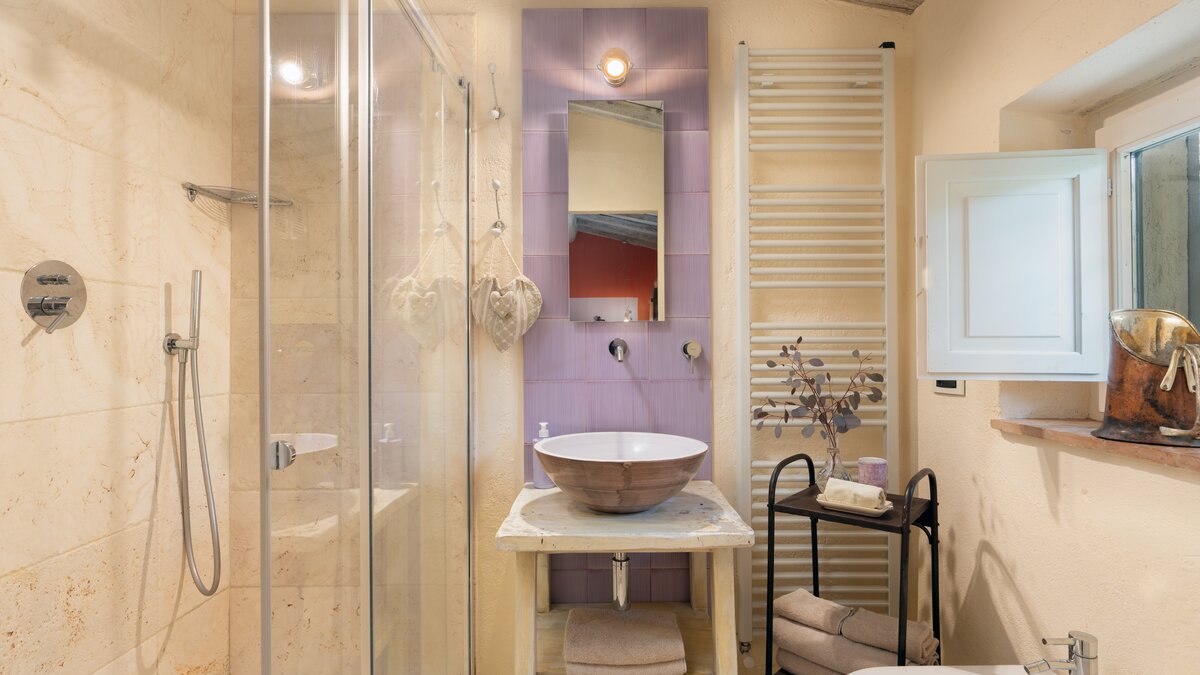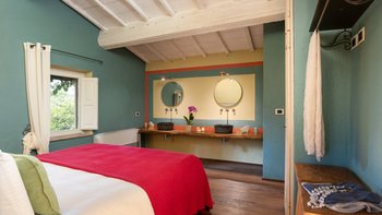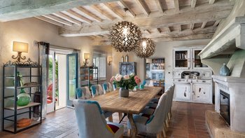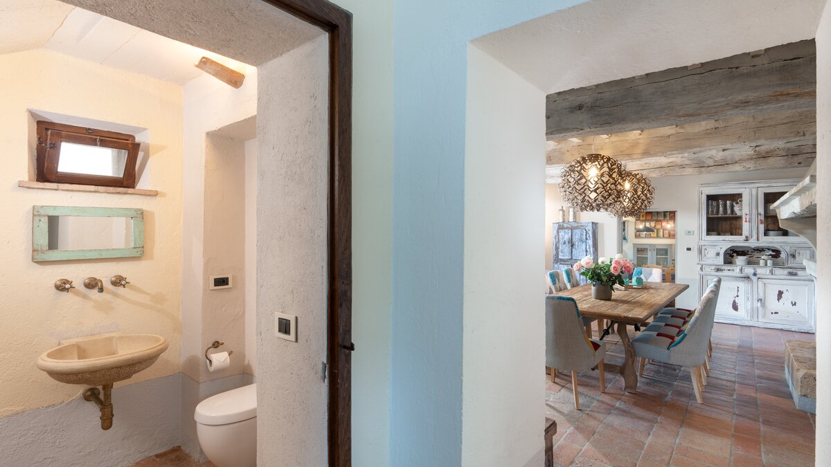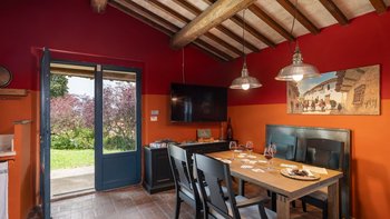 Podere del Paradiso ist eine helle und liebevoll restaurierte Familienvilla in der Toskana, wo auf Anfrage eine Reihe von spannenden Aktivitäten organisiert werden können, von Weinverkostungen bis hin zu Pizza-Partys! Im Erdgeschoss führt die Eingangshalle zu einer rustikalen Küche und einem großen Esszimmer mit Kamin, das sich auf eine überdachte Terrasse öffnet, wo man im Freien speisen kann. Es gibt vier Doppelschlafzimmer mit Bad en suite und ein kleiner Fernsehraum vervollständigt diese Etage. Im Obergeschoss befinden sich zwei weitere Doppelschlafzimmer und ein großes Wohnzimmer, das sich zu einer schönen Terrasse mit Blick auf die Landschaft öffnet; beide Schlafzimmer haben ein eigenes Bad.