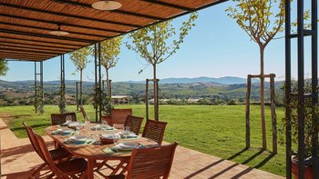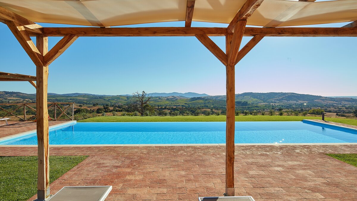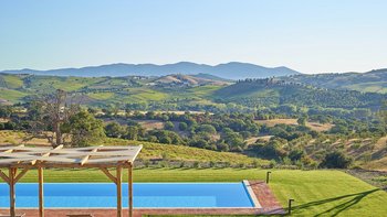 Das Poggio Morellino ist eine elegante Panoramavilla für Familien und Freunde in der Nähe des historischen Großeto und bietet einen spektakulären Blick auf das Meer und die Insel Elba vom großen privaten Pool und den Gärten.