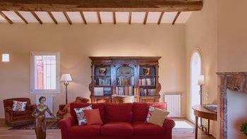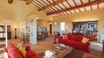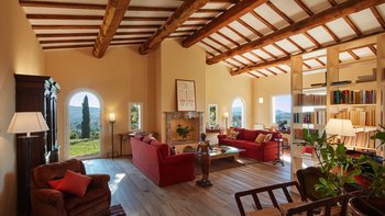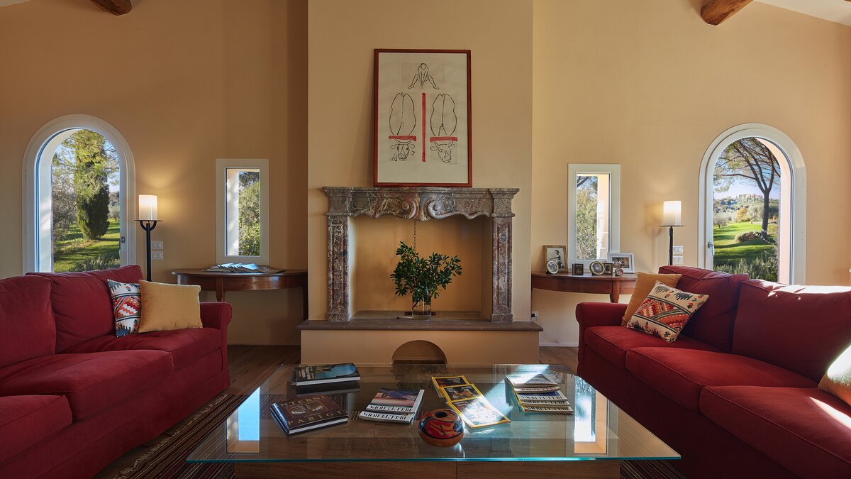 Nur zehn Minuten von der historischen Stadt Großeto entfernt, ist Poggio Morellino eine geräumige und elegante Villa in der toskanischen Landschaft. Dieser Immobilie bietet einen außergewöhnlichen Panoramablick, wobei Elba und Korsika sogar an einem klaren Tag sichtbar sind. Dessen Interieur dieser Immobilie ist stilvoll mit fabelhaften Kunstwerken, Keramik, Drucken, Gemälden und Zeichnungen übersät. Im Erdgeschoss befindet sich ein offenes Grundriss Wohnzimmer in warmen Farbtönen mit Essbereich, komplett mit Antiquitäten, großen Fenstern, um das Beste aus der Aussicht zu machen, und Türen zu den Gärten. Auf dieser Ebene befinden sich auch drei Schlafzimmer, zwei Einzelbetten und ein Doppelbett. Jedes Zimmer verfügt über ein Bad oder eine Dusche en suite. Im ersten Stock befindet sich das Hauptschlafzimmer mit Bad en Suite und zusätzlichem Einzelbett in einer Nische unter dem Dach, geeignet für ein kleines Kind.