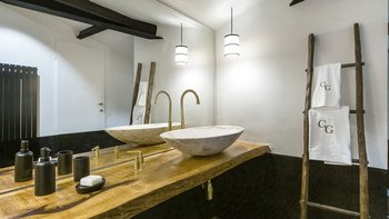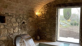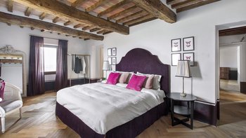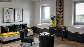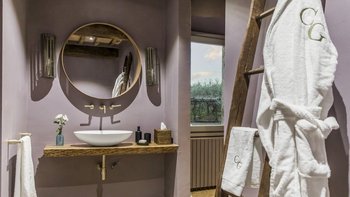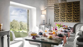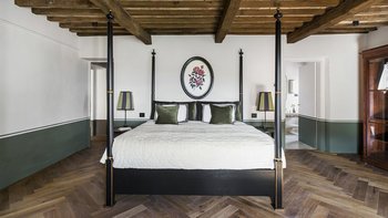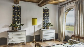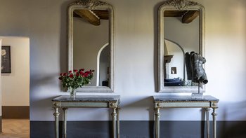 Im Erdgeschoss werden die Gäste von einer großen Eingangshalle mit unverputzten Ziegelsteinen und geschmackvollen Möbeln begrüßt. Des Weiteren gibt es eine voll ausgestattete Küche, ein modernes Esszimmer mit einer Auswahl an Weinen und ein Wohnzimmer mit direktem Zugang zum Außenbereich. Aller Zimmer sind mit gepflegten, historischen Möbeln, die von vergangenen Generationen besessen wurden, und Designer-Touchen mit individuellen Details, die von lokalen Handwerkern erstellt wurden, ausgestattet. Ebenfalls im Erdgeschoss befindet sich ein Fitnessraum, ein Wellnessbereich und ein kleiner Innenpool mit Blick auf die gepflegten Gärten.