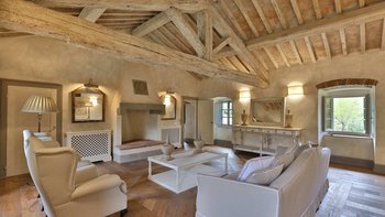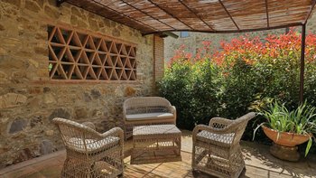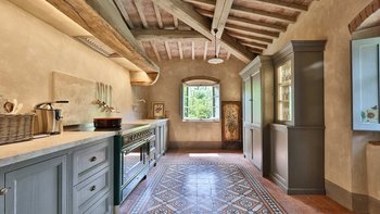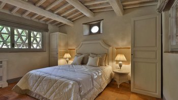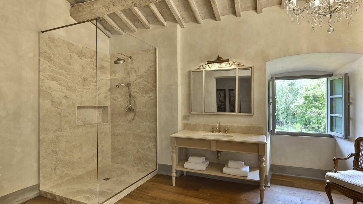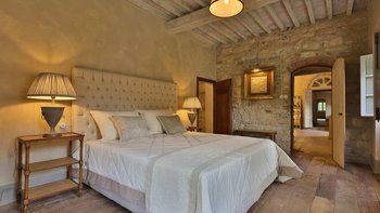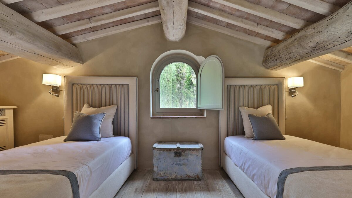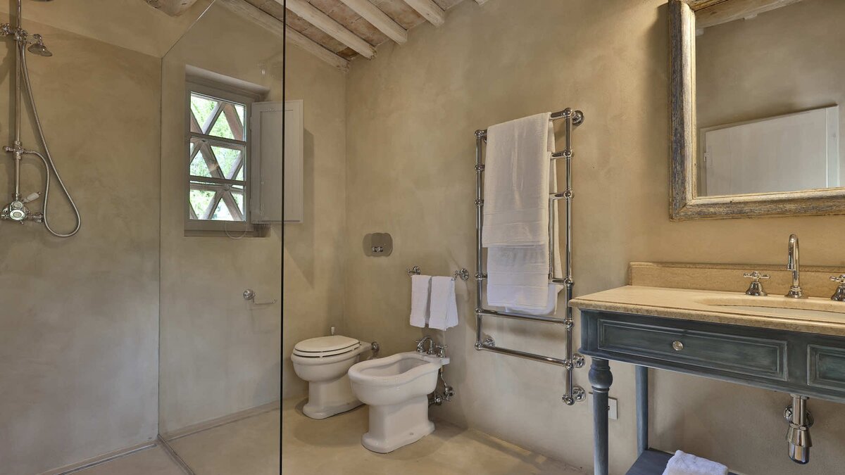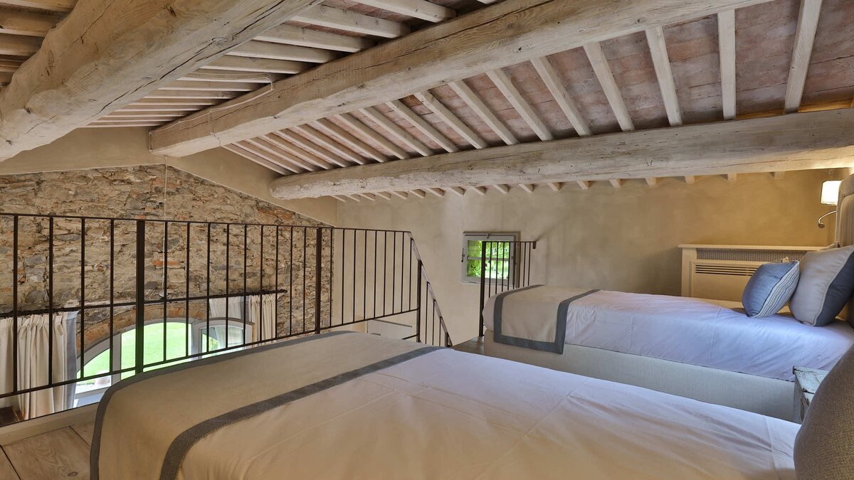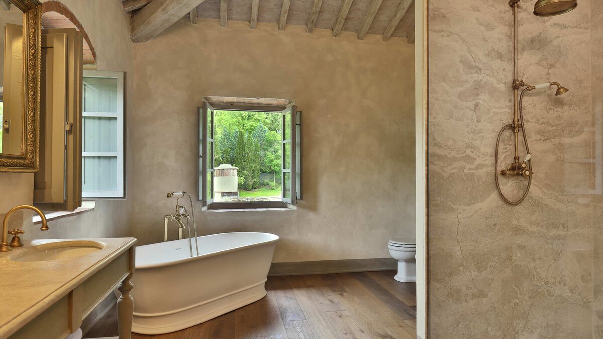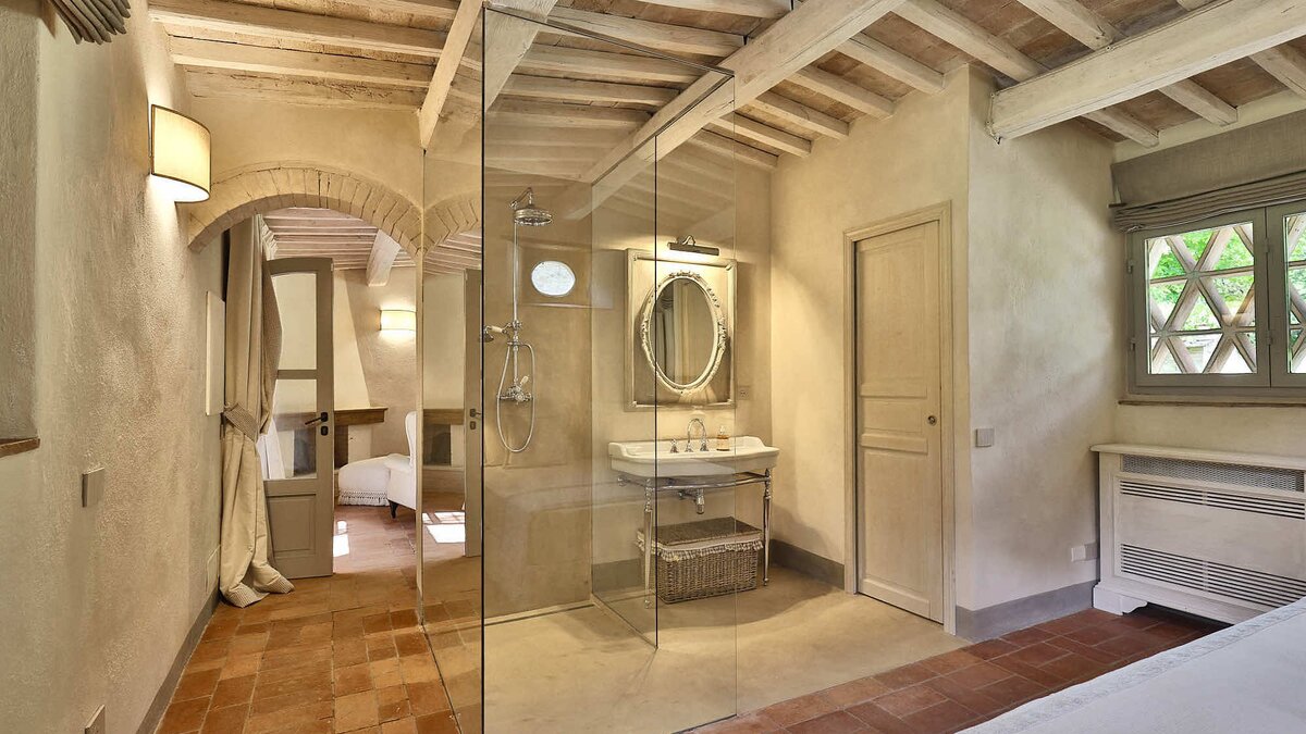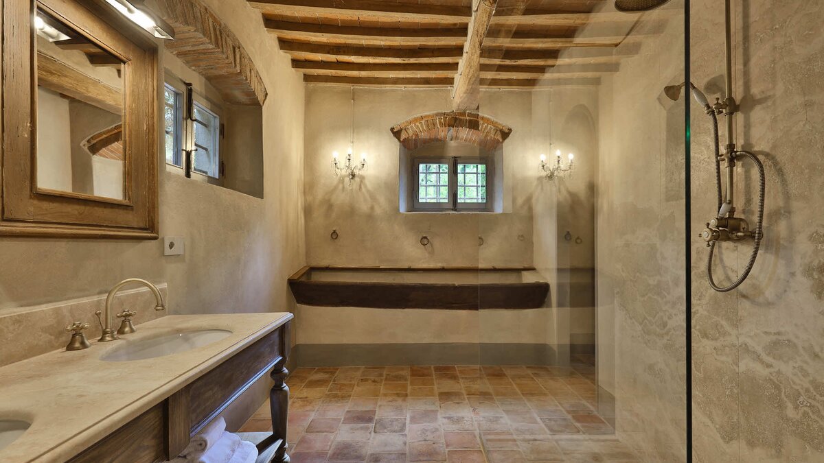 Tenuta del Vescovo ist ein wunderschönes historisches Haus, das mehr als tausend Jahre alt ist und ursprünglich als Getreide- und Weizenmühle erbaut wurde. Deren historische Landschaft rund um die Villa ist reich an üppigen Grüngesetzen, Olivenbäumen und Hanglagen. Im Inneren des Hauses befinden sich der Eingangsbereich, das Esszimmer und die Küche im Erdgeschoss, und es verfügt über sechs elegante Schlafzimmer. Deren erstes ist 'I Cipressi’, das Hauptschlafzimmer mit zeitlosen Grüntönen, die die lebhaften Zypressen im Garten widerspiegeln. Deren geräumige Bad zeichnet sich durch die Präsenz einer freistehenden Badewanne aus, von der aus die Gäste einen bezaubernden Blick bewundern können. 'Il Susino’ ist ein Schlafzimmer mit Doppelbett, das Charme und Eleganz ausstrahlt, mit freiliegenden Holzbalkendecken und Rosatönen, die von den Pflaumenbäumen im Garten inspiriert sind. 'La Camera Antica’ verfügt über einen Parkettboden, einen Kristallleuchter, ein eigenes Duschbad und ein luxuriöses und Super-Kingsize-Bett. 'Le Macine’ ist eine Doppelsuite in dem ehemaligen Stall der Villa mit direktem Gartenblick, einer überdachten Terrasse und einem Sitzbereich im Freien und Freien. Es grenzt an den Raum, in dem die Mühlsteine sorgfältig erhalten werden. 'Il Rosmarino’ befindet sich auf der linken Seite des Gebäudes und besteht aus einem Doppelzimmer im Erdgeschoss mit eigenem Bad sowie einem Zwischengeschoss mit zwei Einzelbetten. Dieses Zimmer öffnet sich auch zu einer Seitenterrasse mit einem Essbereich. ''Il Leccio’ ist das Gästehaus, das aus einem alten Sägewerk umgebaut wurde. Ins Innere besteht das Gästehaus aus einem Wohnzimmer mit Kamin, einer Küche mit einer historischen Marmorspüle und einem Hauptschlafzimmer mit offener Dusche.
