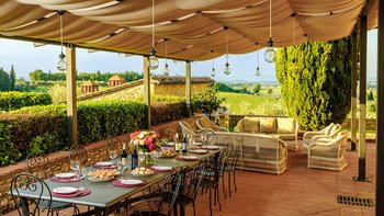 Es gibt acht Schlafzimmer in den ersten Stockwerken, bestehend aus sechs Doppelzimmern und einem Zweibettzimmer, jeweils mit Bad en Suite und herrlichem Weitblick, sowie ein Familienzimmer mit einem Schlafzimmer mit Doppelbett, einem Zweibettzimmer und einem Gemeinschaftsbad. Einem hellen und luftigen Wohnzimmer und einem TV-Raum vervollständigen diese Etage. Des untere Stockwerk bietet zusätzlichen Luxus, wo die Gäste einen Indoor-Jacuzzi und eine Sauna, einen Fitnessraum und einen Massageraum genießen, wo Behandlungen auf Anfrage von einem Masseur arrangiert werden können. Es gibt auch einen Umkleideraum mit Dusche für den Komfort der Gäste. Wenn es um die Lage geht, ist die Villa Chiantisol der perfekte Ort für einen ruhigen Rückzugsort mit Geschäftenund Restaurants und Annehmlichkeiten in Tavarnelle Val di Pesa nur 2 km entfernt; Florenz, Siena, San Gimignano, Volterra und Certaldo sind ebenfalls mit dem Auto erreichbar.