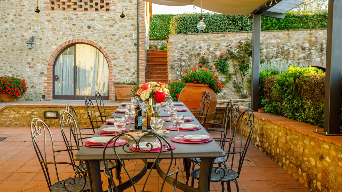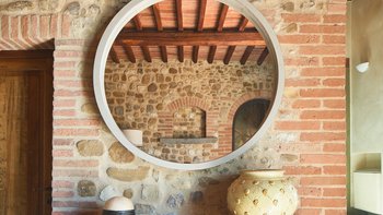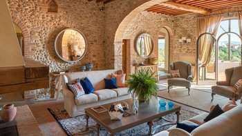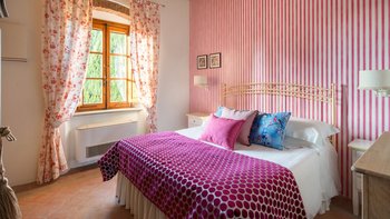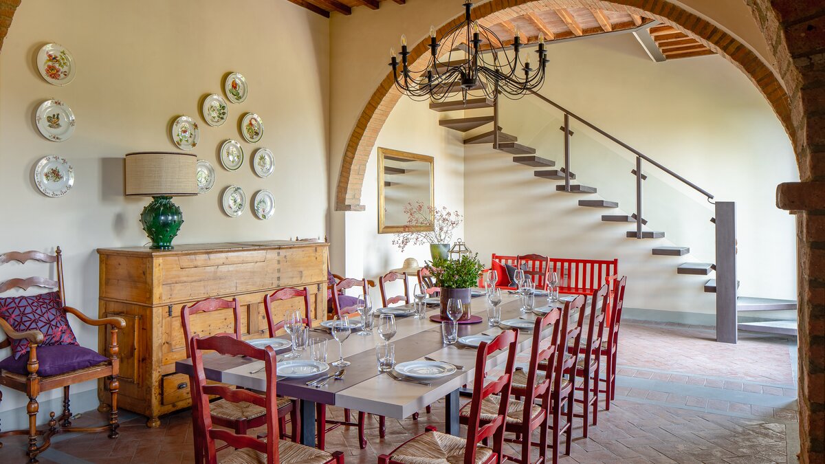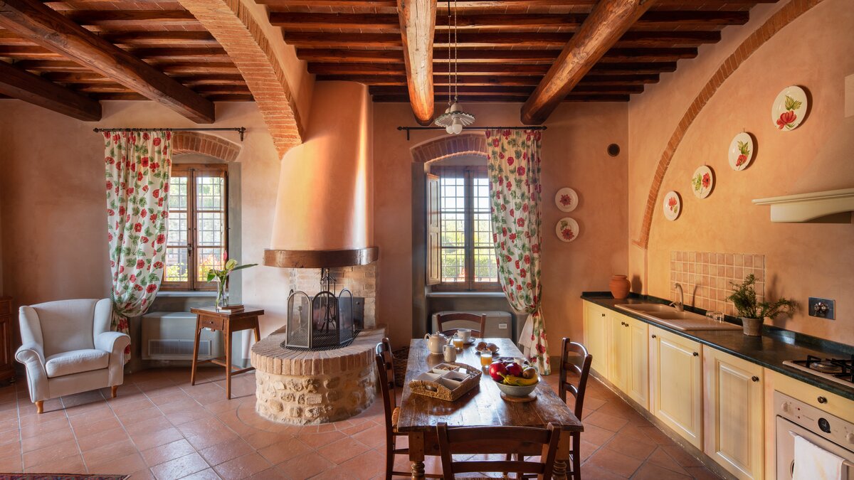 Der Zugang zur Villa Chiantisol erfolgt über eine auffällige Auffahrt, die von schönen Rosen gesäumt ist, während die umliegende Landschaft ein üppiges Meer aus grünen Hügeln und kaskadierenden Weinbergen ist. Der Wohnbereich im Freien ist ebenfalls ziemlich spektakulär, mit einem versunkenen nierenförmigen Pool und erhöhtem Außen-Jacuzzi gepaart mit Sonnenliegen und Sonnenschirmen sowie weiteren bequemen Sitzgelegenheiten, um im Freien zu entspannen und den ruhigen Panoramablick zu genießen. Deren Unterkunft erstreckt sich über drei geräumige Etagen, wobei im Erdgeschoss ein OFFENER GRUNDRISS Wohnbereich mit einer charmanten Küche im Landhausstil in warmen Terrakotta-Tönen eingerichtet ist, der Hauptwohn- und Essbereich mit einem Tisch, an dem alle Gäste gemeinsam speisen können, sowie eine separate Hauptküche. Ein Schlafzimmer mit Doppelbett und ein weiteres WC runden diese Etage ab.