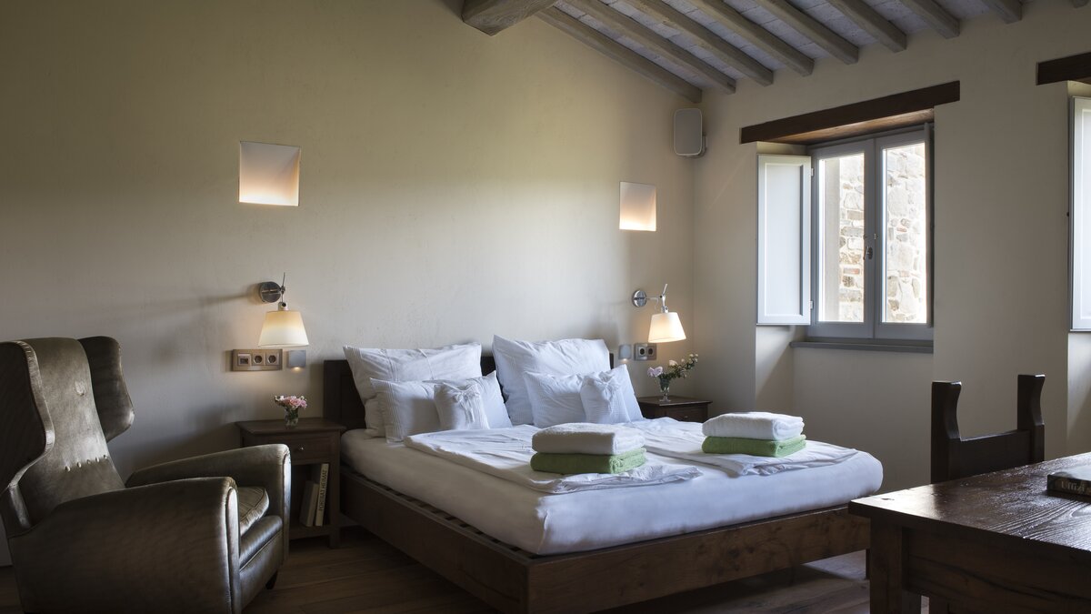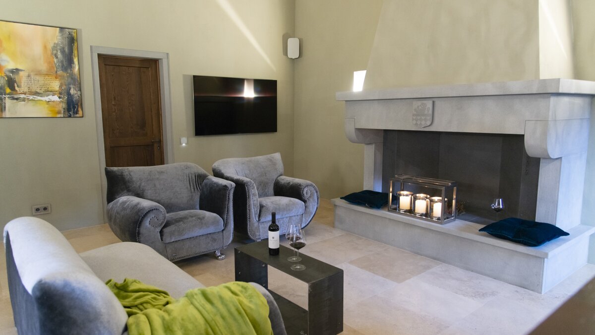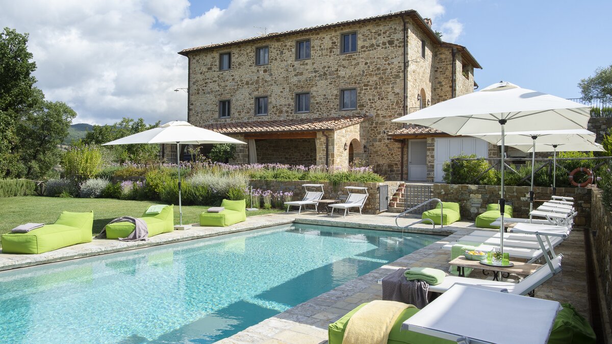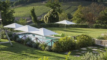 Der Außenbereich ist atemberaubend und bietet einen Panoramablick auf die Landschaft über die umliegenden Weinberge und sanfte Hügel, was die idyllisch abgeschiedene Lage dieser Villa noch verstärkt. Es gibt Yogamatten, auf denen die Gäste den Morgensonnengruß auf der Terrasse üben können, und auf dem weitläufigen Gelände gibt es einen schönen Pool auf einer der Rasenflächen mit Sonnenschirmen, Liegen und Sitzsäcken am Pool. Zu den Feinheiten der Villa Fieravista gehören ein kostenloses Frühstück 7 Tage die Woche und ein leichtes Willkommensdinner, das von einem Küchenchef zubereitet wird.