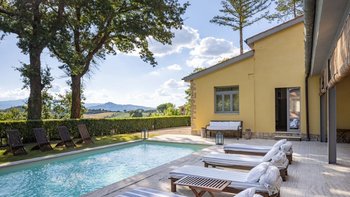 Eingebettet in die sanften Hügel etwas außerhalb von San Casciano dei Bagni, ist die Villa Gioia ein elegantes toskanisches Refugium, das in sechs wunderschön eingerichteten Zimmern mit Bad bis zu 12 Gästen Platz bietet.