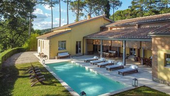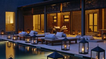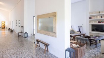 Da alle Unterkünfte im Erdgeschoss angeordnet sind, fühlt sich das Layout sowohl intim und auch weitläufig an – ideal für Familien oder Gruppen von Freunden, die zusammen reisen. Im Inneren finden die Gäste einen geräumigen Wohn- und Essbereich, der sich direkt auf eine sonnendurchflutete Poolterrasse öffnet, ideal für ein nahtloses Leben im Innen- und Außenbereich. Deren angrenzende Küche ist auch mit dem Poolbereich verbunden, sodass Mahlzeiten im Freien mühelos möglich sind. Deren Master-Suite verfügt über Flügeltüren zur Terrasse und ein luxuriöses en-suite Badezimmer mit einer eingelassenen Badewanne. Zwei weitere Doppelschlafzimmer und drei Zweibettschlafzimmer (die in Doppelschlafzimmer umgewandelt werden können) bieten ebenfalls ein eigenes Bad und Flügeltüren zum Garten.