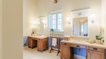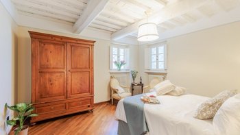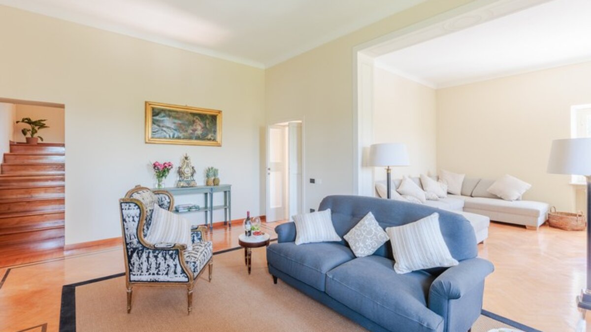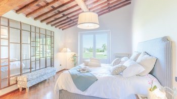 Die Villa bietet Platz für bis zu 10 Personen in fünf elegant eingerichteten Schlafzimmern, die jeweils über ein eigenes Bad verfügen. Deren Innenräume verfügen über originale architektonische Details wie rustikale Holzbalken und historische Böden, gepaart mit geschmackvollen Möbeln und natürlichen Materialien. Ein zusätzliches Schlafsofa ist auf Anfrage erhältlich und bietet somit Flexibilität für Familien.