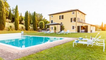 Die Villa Maria Assunta liegt in einer ruhigen Ecke der toskanischen Hügel, umgeben von silbernen Olivenhainen und erhebt sich über dem Tal, von wo aus man einen weiten Blick über Weinberge, hügelige Landschaft und Wald genießt. Denen Villa verbindet authentischen toskanischen Charakter mit modernem Komfort und ist ein einladender Rückzugsort für Familien und Gruppen von Freunden.