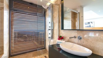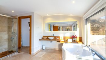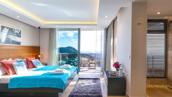 Die Villa Ayaz ist ein atemberaubend modernes Anwesen in der Nähe des sonnigen Kalkan. Im Inneren des Hauses befindet sich ein übermoderner offener Wohn-, Ess- und Küchenbereich, der wunderschön in neutralen Farbtönen eingerichtet ist. Dessen raumhohe Fenster führen auf die Terrasse mit außergewöhnlicher Landschaft und viel Tageslicht. Im Obergeschoss befinden sich drei geräumige Schlafzimmer mit eigenem Bad, bestehend aus zwei Doppel- und einem Zweibettzimmer, die jeweils auf einen wunderschönen Balkon führen. Im dritten Stock befindet sich die geräumige, moderne Suite mit Doppelschlafzimmer, die mit einer freistehenden Jacuzzi-Badewanne mit Blick auf das Meer ausgestattet ist. Deren Villa verfügt auch über einen großen Fitnessraum mit Laufband, Heimtrainern und Hanteln.