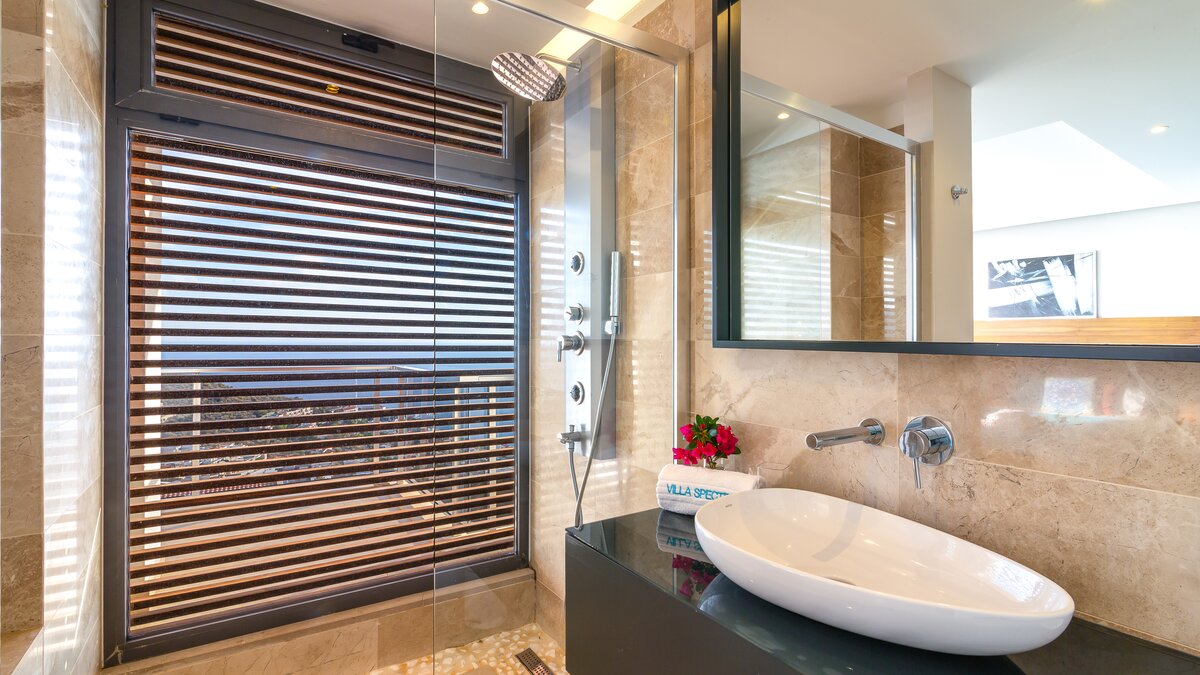 Auf einem Hügel mit atemberaubendem Blick über das Meer gelegen, ist die Villa Ayaz eine moderne Villa mit vier Schlafzimmern mit eigenem Bad und einem Fitnessraum.