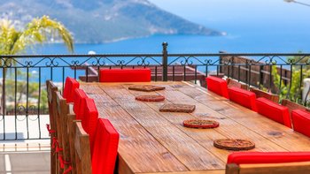 Die Villa Caria liegt in einer abgeschiedenen Gegend oberhalb von Kalkan mit herrlichem Panoramablick und verfügt über alle Einrichtungen für einen fabelhaften Urlaub, darunter ein großer Privater Pool, ein Kinderbecken und ein fantastischer Spielplatz.
