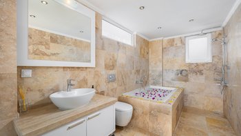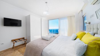 Das Äußere des Anwesens ist genauso schön, komplett mit einem wunderschönen Infinity-Pool. Entspannen Sie sich auf einer Liege am Pool oder gehen Sie auf die schattige Terrasse, um im Freien zu speisen. Der Villa Daglari liegt in der Nähe aller Annehmlichkeiten von Kalkan, mit mehreren Strandclubs auch in der Nähe. Kalkans bezaubernder Kiesstrand ist nur einen Spaziergang von der Unterkunft entfernt. Der nächste Flughafen ist Dalaman, 140 km entfernt. Wenn weitere Unterkünfte erforderlich sind, befindet sich die Villa Yildiz direkt nebenan und bietet Platz für bis zu zehn weitere Gäste.