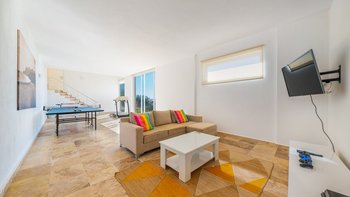 Die Villa Daglari befindet sich perfekt auf einem Hügel, nicht weit vom charmanten Zentrum von Kalkan, und ist ein schönes großes Anwesen für Familien und große Gruppen. Dessen Anwesen erstreckt sich über vier Etagen, von denen jede mit herrlichen großen Fenstern ausgestattet ist, um die herrliche Aussicht zu bewundern. Dessen Erdgeschoss verfügt über eine moderne, voll ausgestattete Küche. Dessen Wohnzimmer ist geräumig und gemütlich, makellos in einem modernen und einladenden Design eingerichtet. Nach oben finden Sie zwei helle Doppelschlafzimmer, jedes mit eigenem Bad. Auf dieser Etage befindet sich auch ein schönes Zweibettschlafzimmer mit eigenem Bad. Im zweiten Stock befinden sich zwei weitere Schlafzimmer, jedes mit eigenem Bad. Die Villa verfügt auch über einen Keller mit einem Spielezimmer mit Tischtennis und Tischfußball.