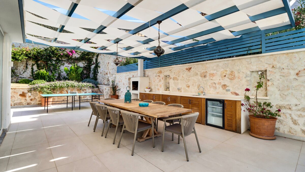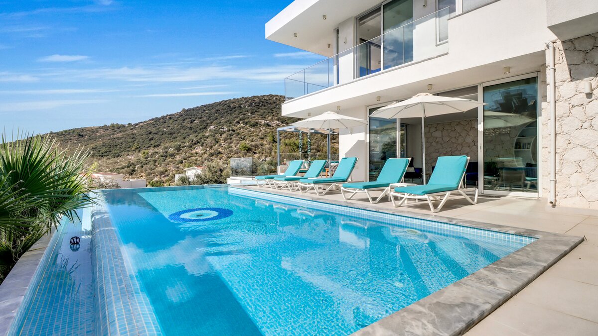 Die Villa verfügt über einen außergewöhnlichen Wohnbereich im Freien mit Poolliegen, einem großen Esstisch und bequemen Sofas. Der luxuriöse Infinity-Pool blickt auf die Hügel, das Meer und die Berge. Annehmlichkeiten wie Geschäfte, Restaurants und Bars sowie einen Strand finden Sie in Kalkan. Es gibt auch mehrere Strandclubs in der Nähe. Zu den Sehenswürdigkeiten gehören die antiken Überreste von Patara und die Überreste von Xanthos. Der nächste Flughafen ist Dalaman, 140 km von der Villa entfernt.