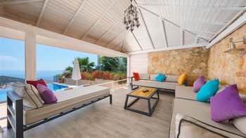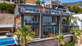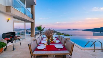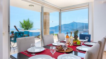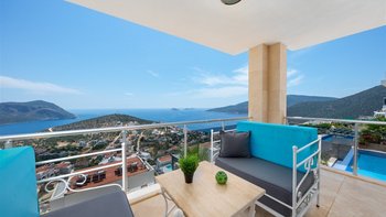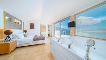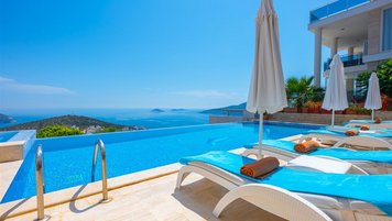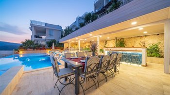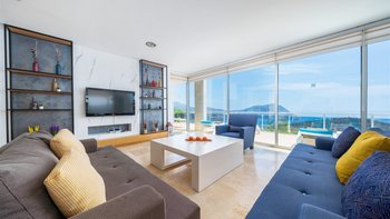 Mit herrlichem Blick von der schönen Poolterrasse über Kalkan und den nahe gelegenen Inseln, ist dies eine luxuriöse, moderne Villa, die Stil und Qualität ausstrahlt.