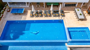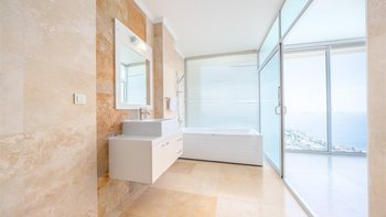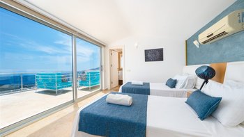 Hoch oben auf dem Hügel über Kalkan inmitten einer kleinen Gruppe ähnlicher Immobilien gelegen, ist diese fabelhafte Familienvilla geräumig, stilvoll und hervorragend gestaltet. Mit kompletter Klimaanlage, monochromem Dekor und kühlen Marmorböden ist das Erdgeschoss ein luftiger offener Raum, wo das große Wohnzimmer zur Ess- und Poolterrasse führt und die Küche mit modernen Geräten und Arbeitsflächen aus Granit ausgestattet ist. Denen sechs Schlafzimmer der Villa befinden sich in den beiden oberen Etagen, mit einer Mischung aus Doppel- und Zweibettzimmern für Familien oder Gruppen von Freunden und raumhohen Fenstern, um zu einer herrlichen Aussicht aufzuwachen.