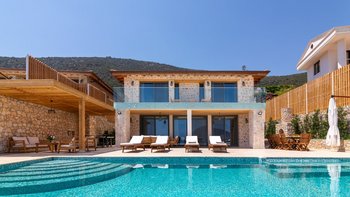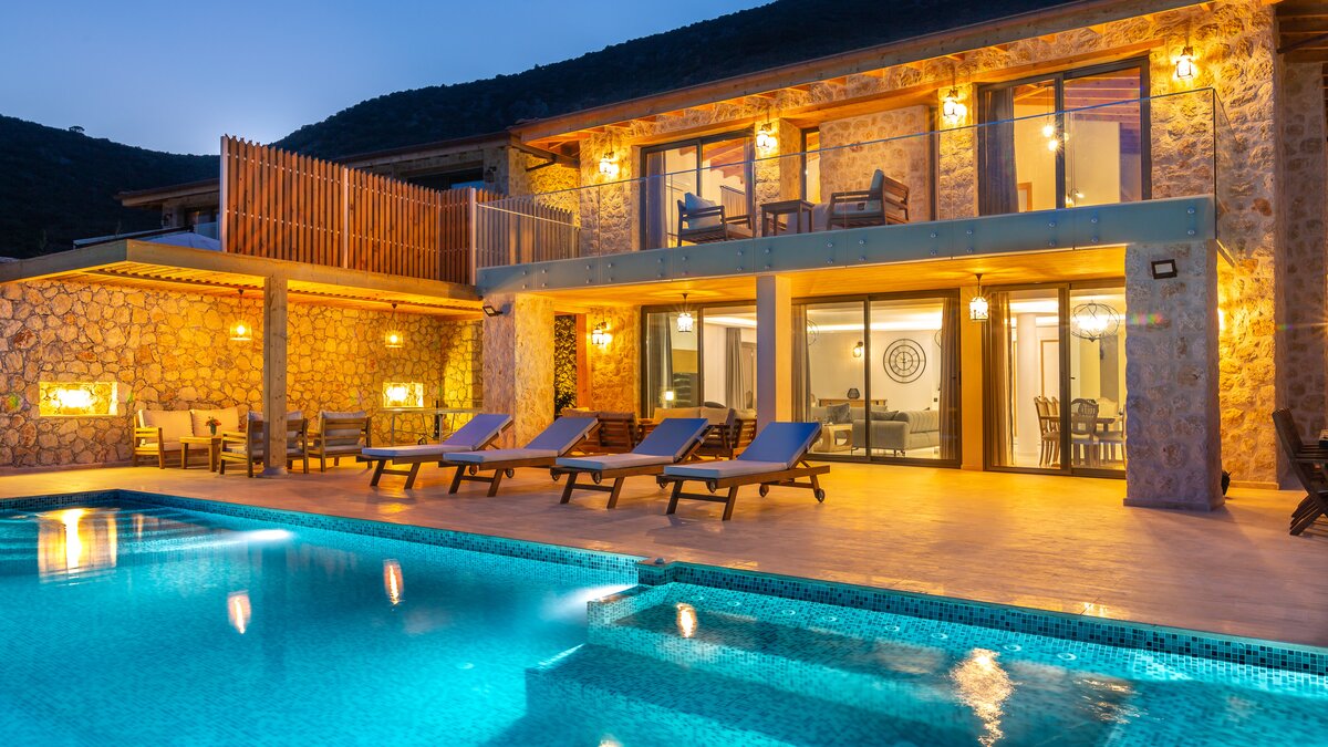 Die moderne und geräumige Unterkunft Villa Kenar in Kalkan bietet viel Platz zum Entspannen und Unterhalten. Sie bietet direkten Zugang zum Strand.