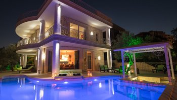 Villa Koti ist eine geräumige, freistehende Villa in einer günstigen Lage für die Altstadt von Kalkan, den Strand, den Hafen, die Geschäfte und Restaurants in ca. 10 Minuten zu Fuß entfernt. Diese aus lokalem Stein erbaute Immobilie hat einen immensen Charakter und einige großartige Außenbereiche, in denen Sie sowohl drinnen und auch draußen auf dem Pool und den Terrassen entspannen können. Der Balkon erstreckt sich über die gesamte Breite des Grundstücks im ersten und zweiten Stock und bietet eine herrliche Aussicht.