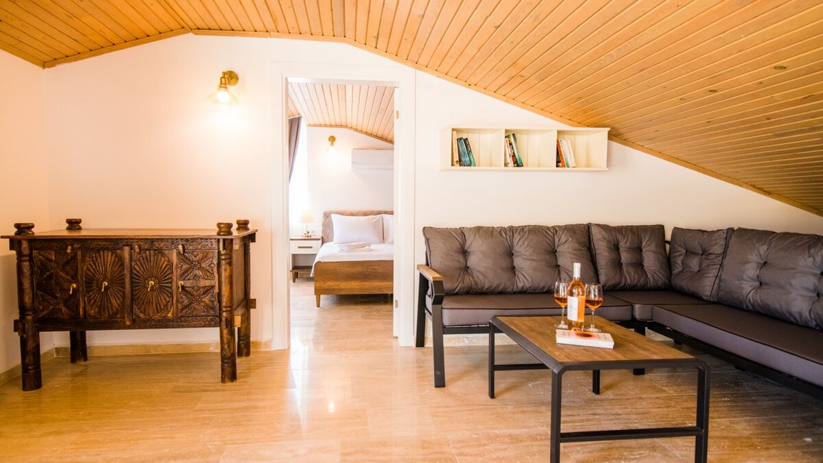 Villa Merkez ist eine Kombination aus drei Wohnungen, die zu einer Villa zusammengefasst sind, um den Gästen einen erholsamen Aufenthalt mit sieben Schlafzimmern zu bieten.