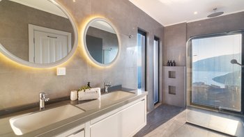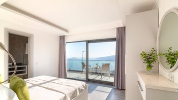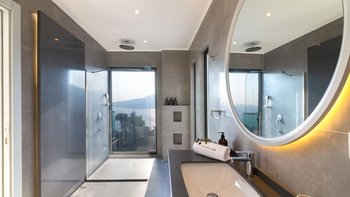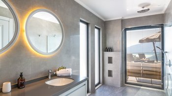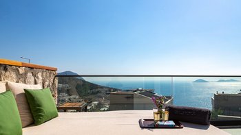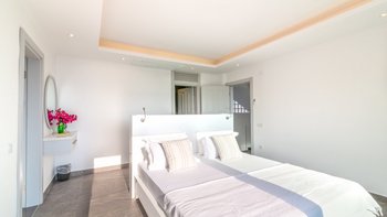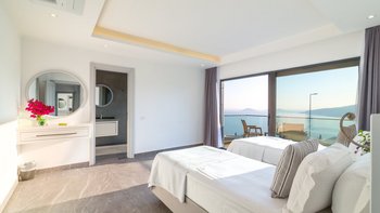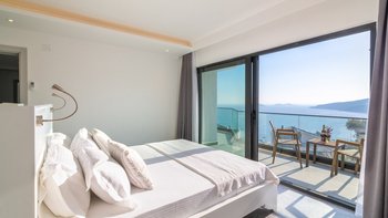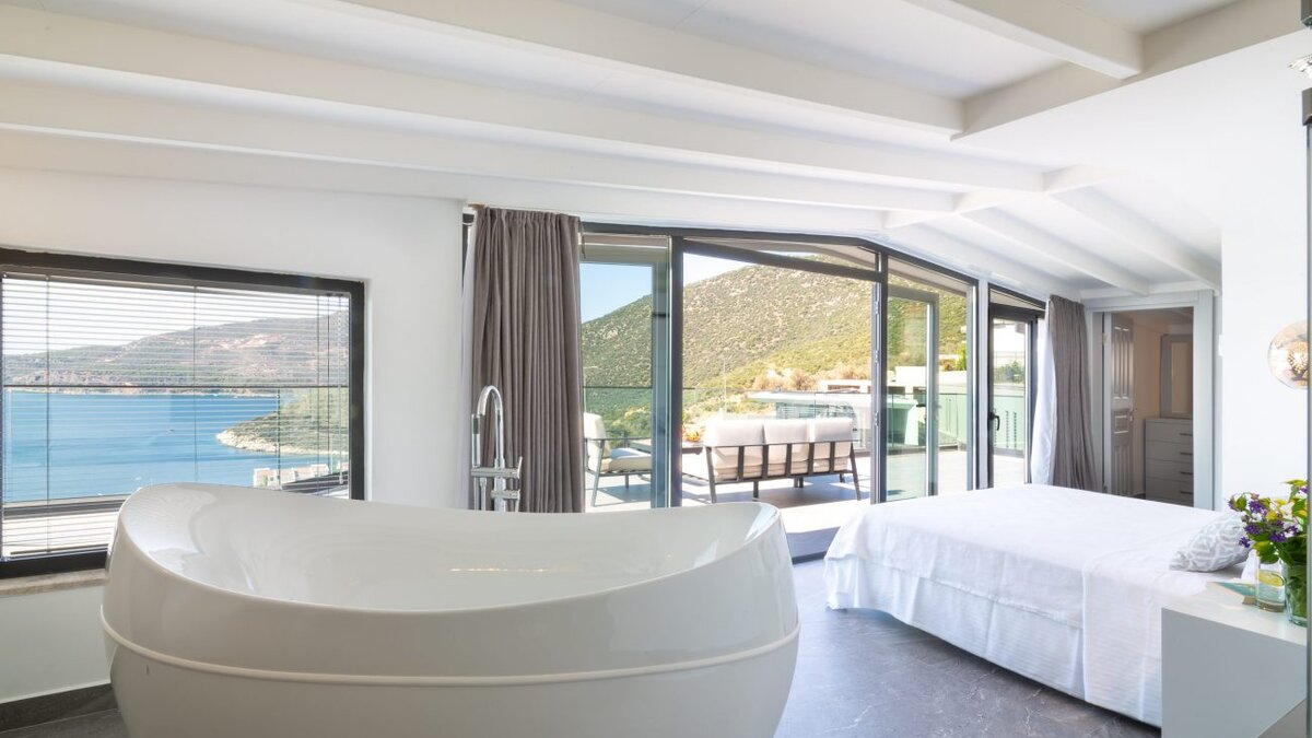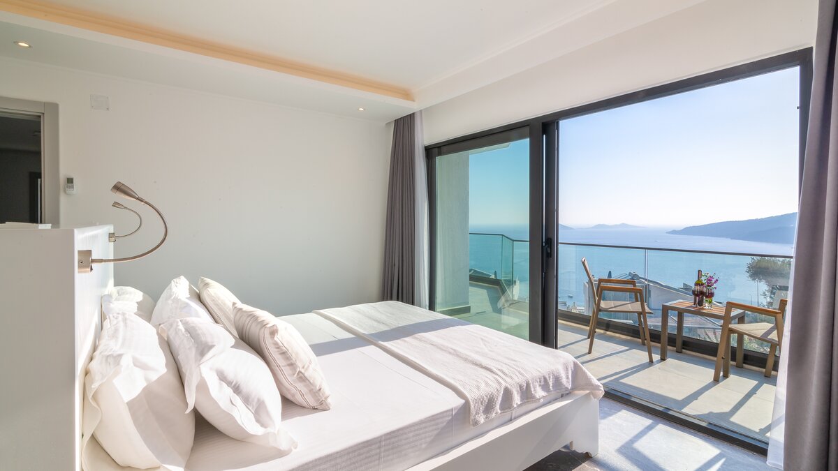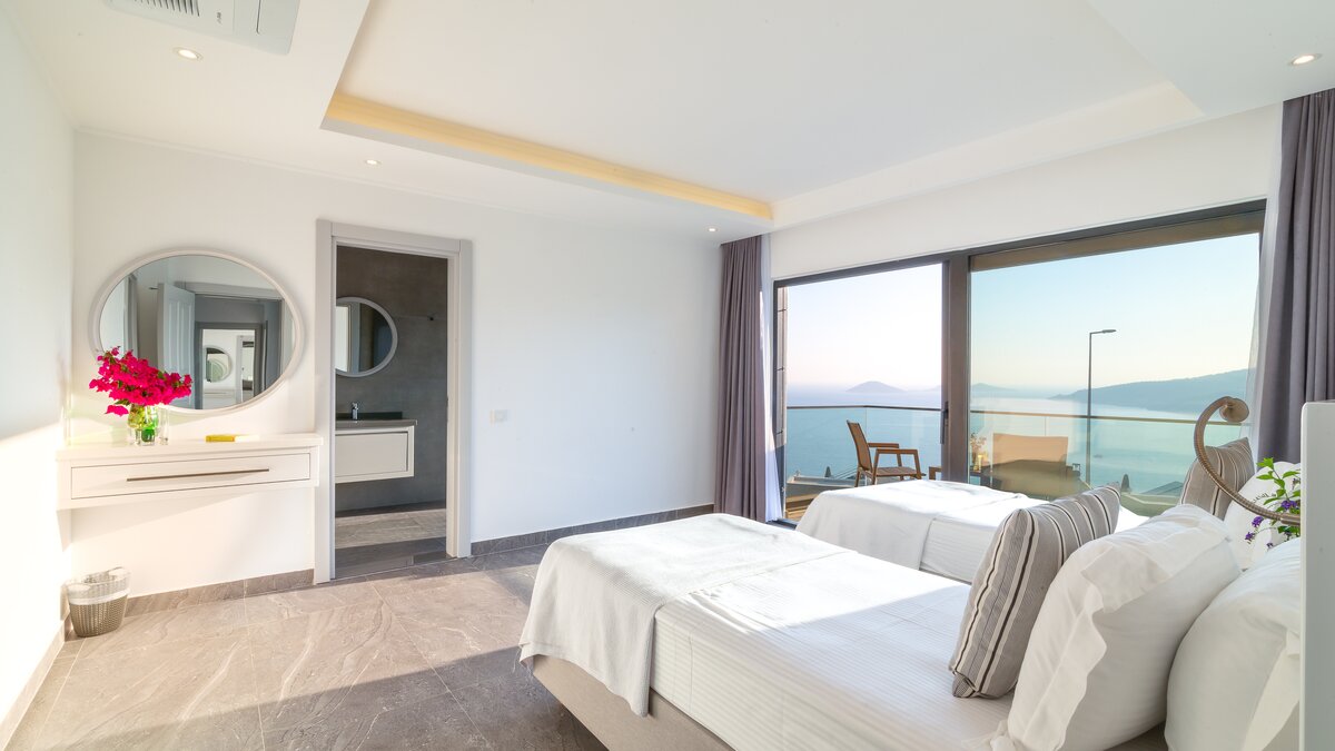 Auf der ersten Etage befinden sich drei Doppelschlafzimmer, alle mit eigenem Bad mit Dusche. Auf dieser Etage steht allen Gästen ein gemeinsamer Balkon zur Verfügung, von dem aus sie die Sonnenuntergänge von Kalkan bewundern können. Machen Sie sich auf den Weg in die zweite Etage, wo sich das Hauptschlafzimmer befindet. Dieser Suite verfügt über ein freistehendes Bad und eine private Dachterrasse. Im unteren Erdgeschoss befindet sich ein weiteres Doppelschlafzimmer mit eigenem Bad mit Dusche und eigenem Balkon.