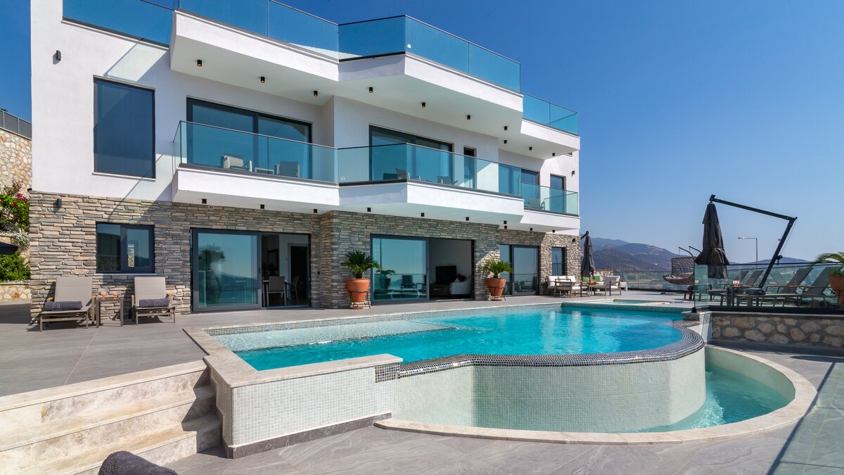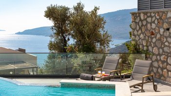 Die Villa Olive genießt eine ideale Lage auf einem Hügel und bietet einen beeindruckenden Blick auf das Meer auf Kalkan und verfügt über ebenso beeindruckende Einrichtungen, die sich perfekt für eine Familie oder eine große Gruppe eignen.