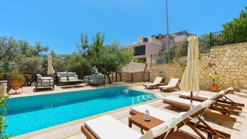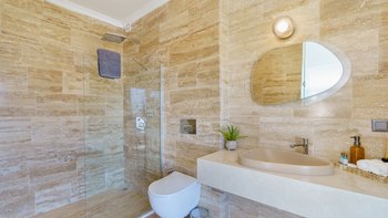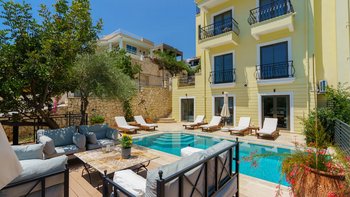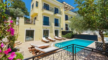 Das Anwesen ist auch mit einem erfrischenden privaten Pool ausgestattet, umgeben von üppigen Grün- und Liegestühlen für totale Entspannung. Deren Villa befindet sich in einer brillanten Lage, nur fünf von Kalkans Altstadt, Strand, Hafen, Geschäften und Restaurants entfernt. Es ist ein einfacher Spaziergang ohne Taxi zurück.
