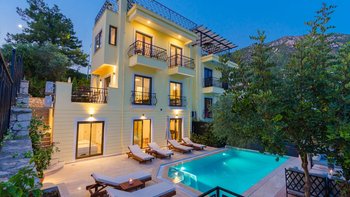 Die Villa Sari ist eine freundliche und einladende Familienunterkunft in der Türkei, nur einen Spaziergang von der charmanten Altstadt und dem Strand von Kalkan entfernt.
