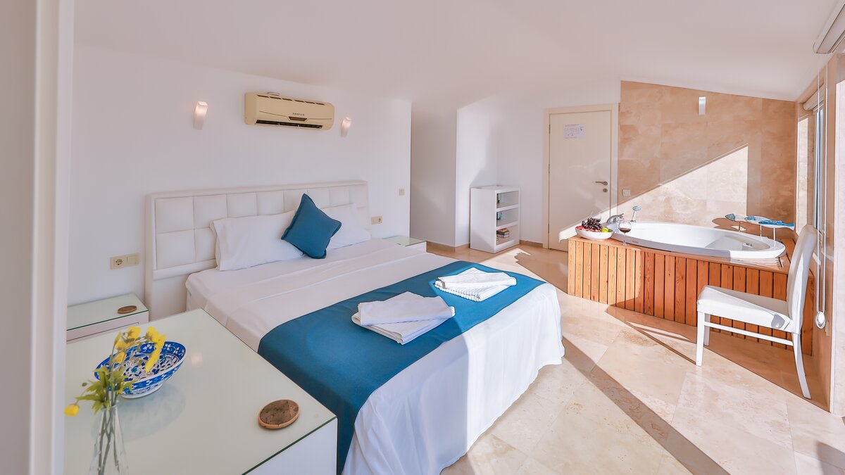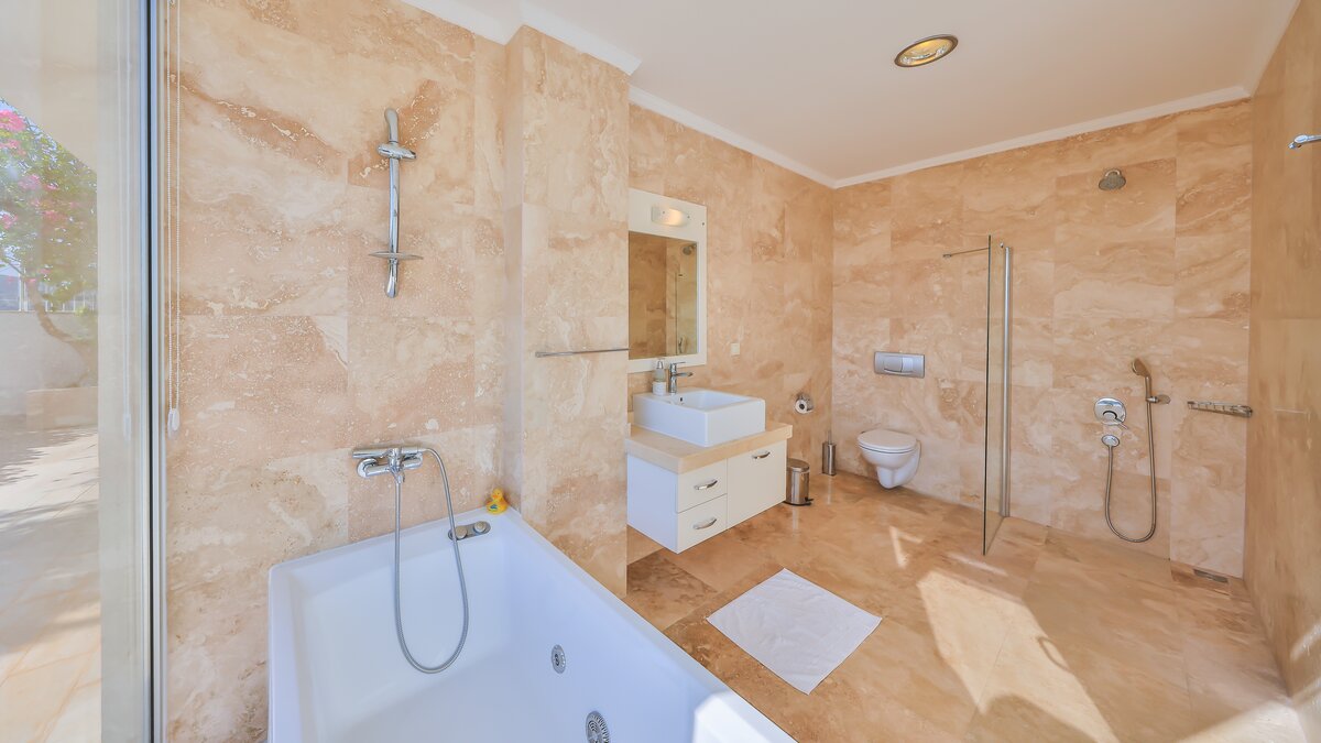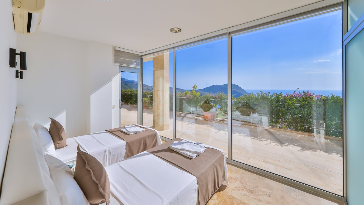 Im Inneren der Villa Yalman wurde mit Komfort und Stil im Hinterkopf entworfen. Der geräumige, offene Wohnbereich erstreckt sich auf die mittlere Etage und verfügt über zwei einladende Wohnbereiche, eine voll ausgestattete Küche und einen separaten Essbereich. Jedes der fünf Schlafzimmer verfügt über ein eigenes Bad und direkten Zugang zu den möblierten Terrassen, die einen privaten Rückzugsort für alle bieten. Für zusätzlichen Genuss sorgen zwei Schlafzimmer mit einem Indoor-Jacuzzi, während die Sauna und das Dampfbad der Villa eine Spa-ähnliche Atmosphäre schaffen, in der sich die Gäste nach einem erlebnisreichen Tag entspannen können.