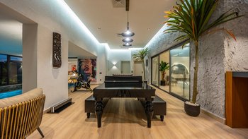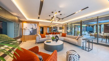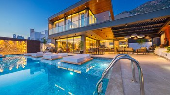 Villa Yildiz ist eine auffallend moderne, neu erbaute Immobilie in Kalkan und bietet einen unglaublichen Blick auf das Meer und die Stadt. Dessen dreistöckige Villa ist positioniert, um das Beste aus den atemberaubenden Sonnenuntergängen der Türkei zu machen, und ist außergewöhnlich geräumig, um große Gruppen und Familien unterzubringen. Im Erdgeschoss werden die Gäste von einem eleganten und großen offenen Grundriss Wohnzimmer, einem Esszimmer und einer Küche beeindruckt sein. Dessen Design ist modern mit geschmackvollen neutralen Farbtönen, Pflanzen und großen Fenstern, die wunderschöne Meereslandschaften zeigen. Es gibt reichlich Unterhaltung im unteren Erdgeschoss, darunter ein Innenpool, ein Fitnessstudio, ein Billardtisch und eine Bar. Der Hammam und die Sauna bieten den perfekten Ort, um sich zu entspannen und neue Energie zu tanken.
