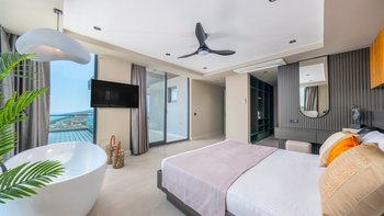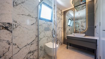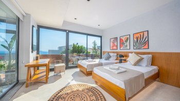 Diese Etage verfügt über ein Kingsize-Doppelzimmer mit stilvollem en-suite Duschbereich, das nahtlos in das Schlafzimmer integriert ist und ein modernes, offenes Design bietet. Es gibt auch ein Zweibett-Schlafzimmer mit Dusche en-suite. Auf der ersten Etage befinden sich drei helle und luftige Schlafzimmer mit jeweils einem Duschbad en-suite und einer außergewöhnlichen Aussicht auf Kalkan.