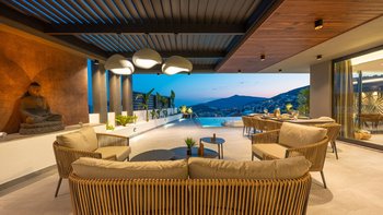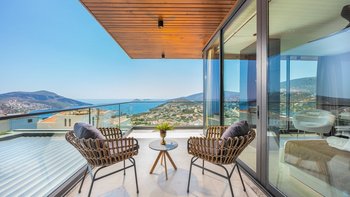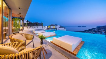 Mit einem atemberaubenden Blick auf das Meer und über Kalkan ist die Villa Yildiz eine beeindruckende, moderne und geräumige Unterkunft, die sich ideal für große Gruppen und Familien eignet.
