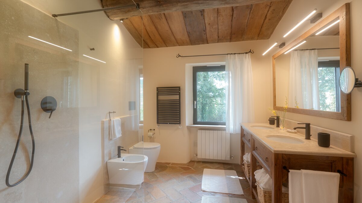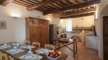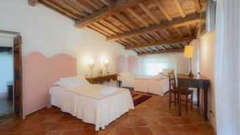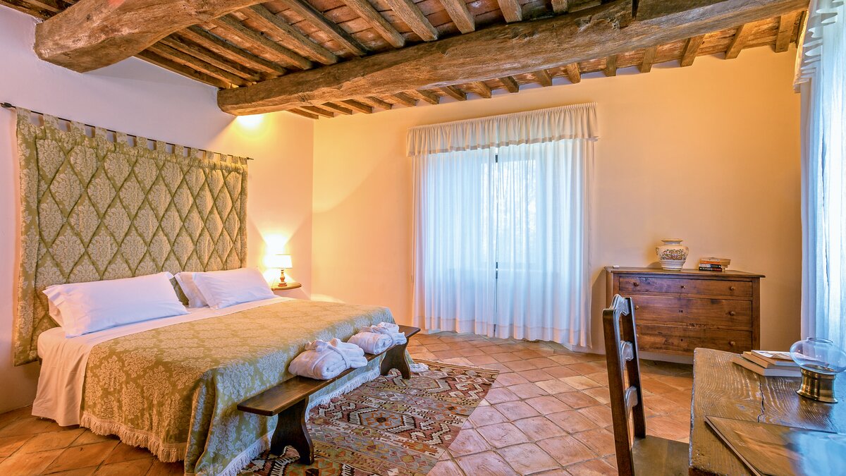 Alle sind mit eleganter Einfachheit eingerichtet, mit Landhausküchen und modernen Bädern, naiven Bänken und bequemen Sofas, offenen Kamine und Restaurants im Freien. Und alle genießen den Service des freundlichen Personals und teilen sich die Nutzung eines großen Swimmingpools, eines Tennisplatzes und des Club Bastia, einer wunderschön umgebauten Kapelle mit Lounge- und Essbereich, wo lokale Gerichte für (optionale) Abendessen angeboten werden. Borgo Bastia Creti ist nur 15 km von den Annehmlichkeiten in Umbertide entfernt. Dessen Anwesen wurde kürzlich einem umfassenden Renovierungsprogramm unterzogen.