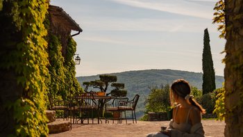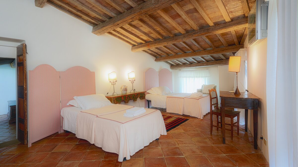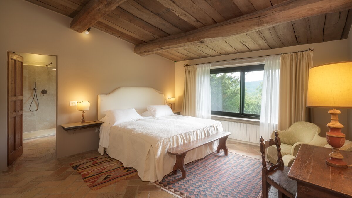 Borgo Bastia Creti ist mehr „Dorf“ als „Villa“, ein abgelegener kleiner Weiler, dessen faszinierende alte Häuser einen Hügel krönen, der natürlich ins Grüne abgeschirmt ist. Denen einzelnen Cottages und Innenhöfe wurden im modernen Landhausstil restauriert und sind durch gepflasterte Wege und Terrassen miteinander verbunden. Sie sind von einem weitläufigen Grundstück mit Blumenbänken und herrlicher Aussicht umgeben. Sie reichen von einem romantischen Rückzugsort für zwei Personen, La Limonaia, einem privaten Ferienhaus am Rande des Borgo, wo man Abgeschiedenheit und atemberaubende Ausblicke genießt, bis hin zu Gli Olivi für bis zu vier Personen, einem geräumigen und hellen Anwesen auf zwei Etagen mit herrlicher Aussicht. Das privat gelegene Cottage mit herrlicher Aussicht und einem von einer Rasenfläche umgebenen Innenhof und der Innenhof I Cipressi mit herrlichem Blick über das Anwesen bieten Platz für jeweils sechs Personen. Dessen größte Anwesen, Ginestre, bietet ungewöhnlich luftige Unterkünfte auf drei Etagen, die durch eine geschwungene Turmtreppe verbunden sind, und ist geräumig genug für acht Personen.