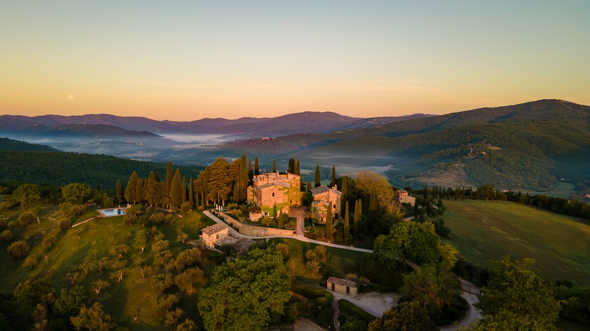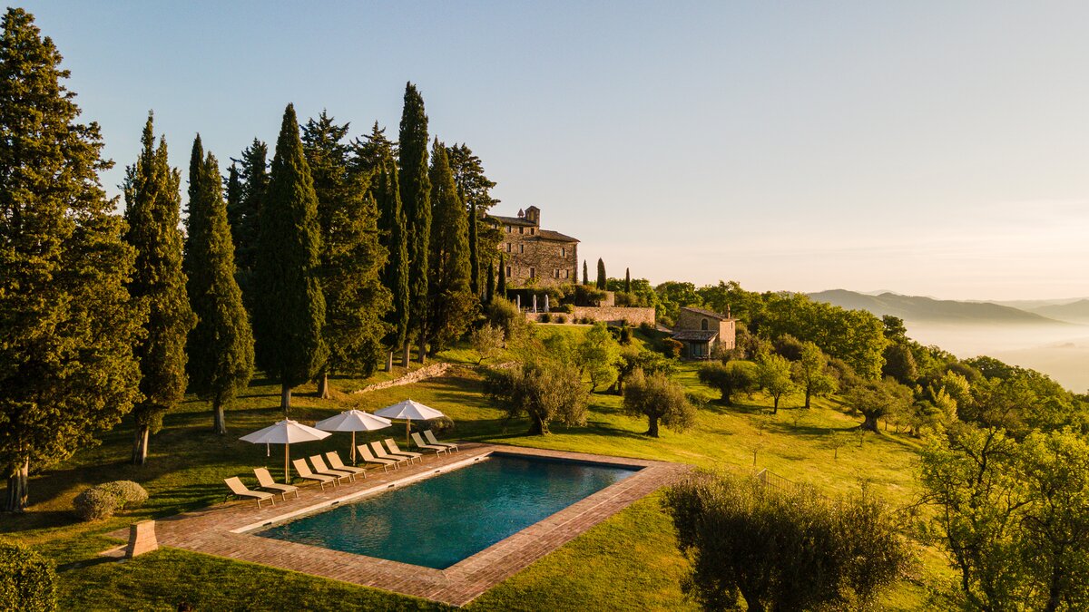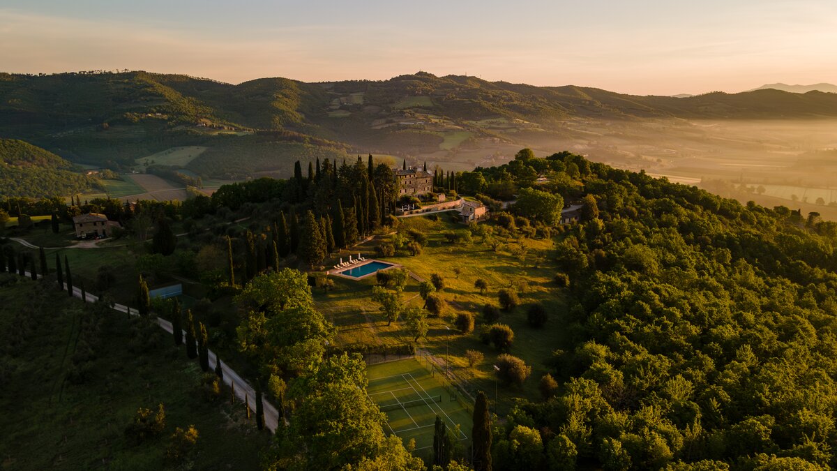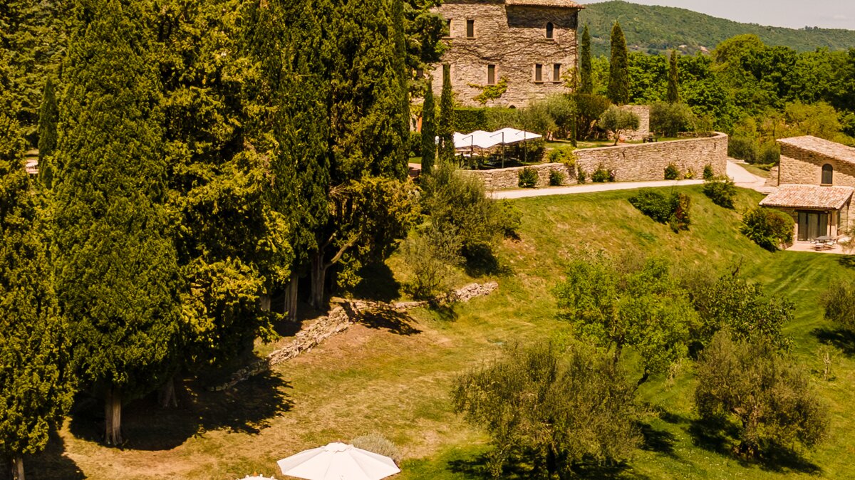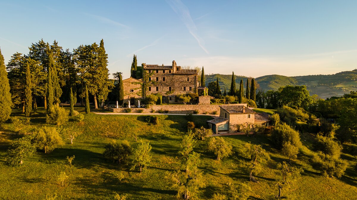 Diese luxuriöse 'Villa’ in Umbrien ist ein fantastischer Ort für eine besondere Feier. Sie besteht aus fünf Gebäuden, die einen ganzen Weiler bilden, hoch in den Hügeln mit geräumigen, schön eingerichteten Zimmern, vielen Plätzen in der Sonne oder im Schatten, einer Auswahl an Einrichtungen und einem Concierge und.