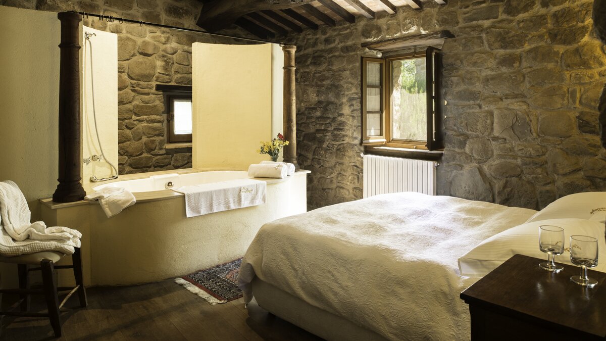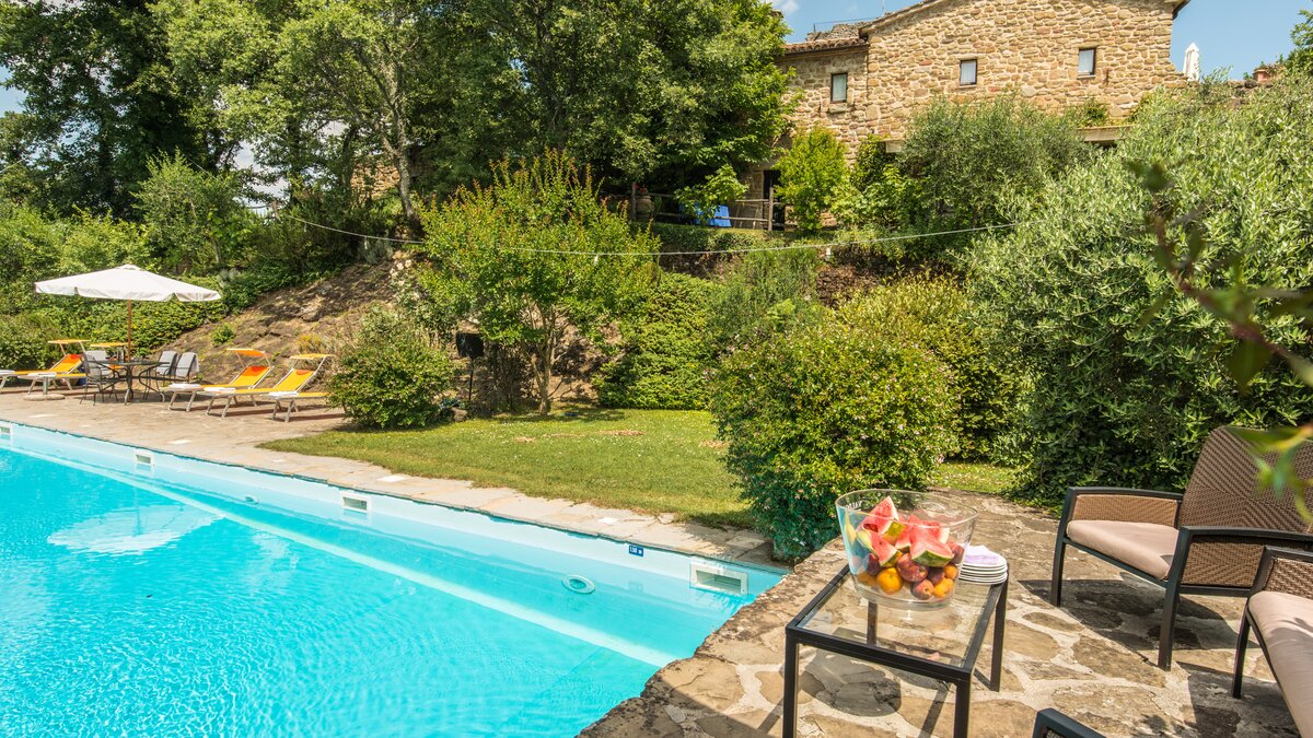 Ein einzigartiger und faszinierender Urlaubsort, der eine seltene Gelegenheit bietet, die exklusive Nutzung eines ganzen historischen Weilers zu genießen. Deren bemerkenswerte „Borgo“ (oder kleines Dörfchen), das als eines der schönsten Italiens gilt, liegt inmitten grüner Hügel, in der Nähe mittelalterlicher Städte sowohl in Umbrien und auch in der Toskana. Es wurde von seinem Besitzer Renato liebevoll restauriert und besteht aus sechs separaten Gebäuden, die sich auf einem schattigen Grundstück mit vielen verschiedenen Plätzen befinden, mit viel Sonnen- und Schattenmöbeln zum Lesen oder Spielen. In verschiedenen Größen für zwei bis fünf Personen ist jedes individuell gestaltet, um seinen Charakter zu bewahren und gleichzeitig modernen Komfort hinzuzufügen. Aller verfügen über eine private, möblierte Gartenterrasse. Deren Aufteilung der Unterkünfte ist einfach. Die „Weilerhäuser“ von Casa del Contadino, Il Forno, Casa del Prete sind alle in Hufeisenform angelegt. Casa del Castagno mit möblierter Panoramaterrasse liegt etwas abseits. Casa di Venere und The Tower befinden sich am anderen Ende des Weilers. Deren tausend Jahre alte Turmvilla verfügt über eine Dachterrasse mit spektakulärer Aussicht, die seit Jahrhunderten unverändert ist, und einen ziemlich modernen Whirlpool, von dem aus man sie genießen kann.