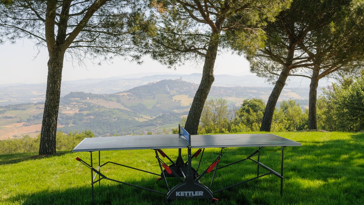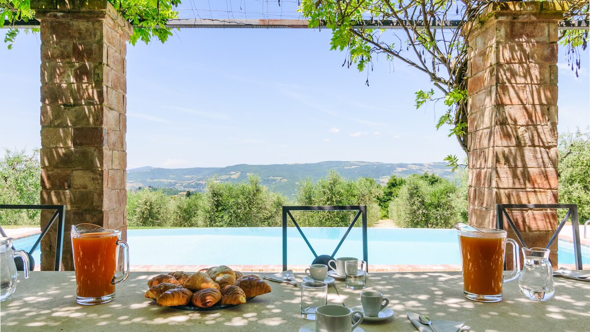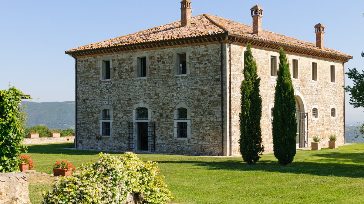 Sogar von der sehr traditionellen Steinfassade aus sieht dieses Haus eher wie eine Landvilla aus als ein weitläufiges Gehöft, aber dennoch überrascht das helle und geräumige Interieur. Denen alte Welt trifft auf das neue in einem langen Wohnzimmer mit seiner gerippten Terrakotta-Decke über klaren weißen Wänden und großen modernen Sofas, einem großen Steinkamin an einem Ende und den klaren Linien einer modernen Essecke am anderen Ende. Es gibt allen Komfort unter dem Dachsparren, das Arbeitszimmer ist mit WLAN und iPod-Dockingstation ausgestattet und die Schlafzimmer sind übersichtlich und dezent. Draußen bietet ein langer Marmortisch die große Terrasse an lauen Abenden bei Kerzenschein und zwei Treppen führen hinunter zum Infinity-Pool, wo ein großes Poolhaus mit eigener Küchenzeile eine mit Glyzinien überzogene Terrasse für Mittagessen im Freien serviert. Des 4 Hektar große Grundstück umfasst versilberte Olivenhaine und fällt sanft hinunter zu einem Tennisplatz ab (gemeinsam mit der Schwestervilla Casa Andrea). Ein Kochservice könnte hier ein zusätzlicher Genuss sein, und es gibt ein ausgezeichnetes Restaurant nur eine kurze Autofahrt entfernt. Dessen sehr ruhige Lage ist nur 8 km von Geschäften und Restaurants im schönen Todi entfernt, dessen Skyline von der Villa aus sichtbar ist.