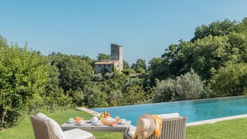 An der Grenze zwischen Umbrien und der Toskana gelegen, ist das Colle Alto ein imposantes historisches Haus, das sorgfältig restauriert wurde, um ein einzigartiges Anwesen zu schaffen. Mit traditionellen architektonischen Merkmalen wie freiliegenden Holzbalkendecken und alten Steinkaminen ist das Innendesign der Villa charaktervoll und einzigartig mit moderneren Möbeln. Denen beiden Gebäude blicken auf einen herrlichen Panoramablick auf die umliegenden Hügel und befinden sich am gegenüberliegenden Ende des schönen, offenen Gartens, wo sich ein versunkener Infinity-Pool in der Sonne sonnen lässt. Deren Haupthaus umfasst verschiedene großzügige Wohnbereiche mit viel Platz zum Essen und Entspannen, neben einer gut ausgestatteten offenen Küche. Es gibt sechs große Doppelschlafzimmer, die alle mit einem eigenen Bad und einer Mischung aus luxuriösen Kingsize- und Super-Kingsize-Betten für ultimativen Komfort ausgestattet sind. Der Master-Suite und ein weiteres Zimmer im zweiten Stock haben beide Zugang zu einer Gemeinschaftsterrasse mit atemberaubender Aussicht. Dessen geräumige Nebengebäude verfügt über vier weitere Doppelschlafzimmer mit Dusche en suite sowie eine zweite Küche und ein Wohnzimmer.