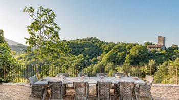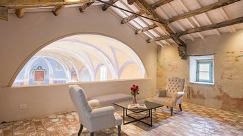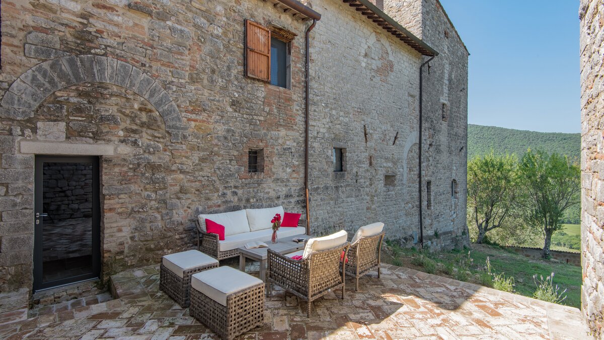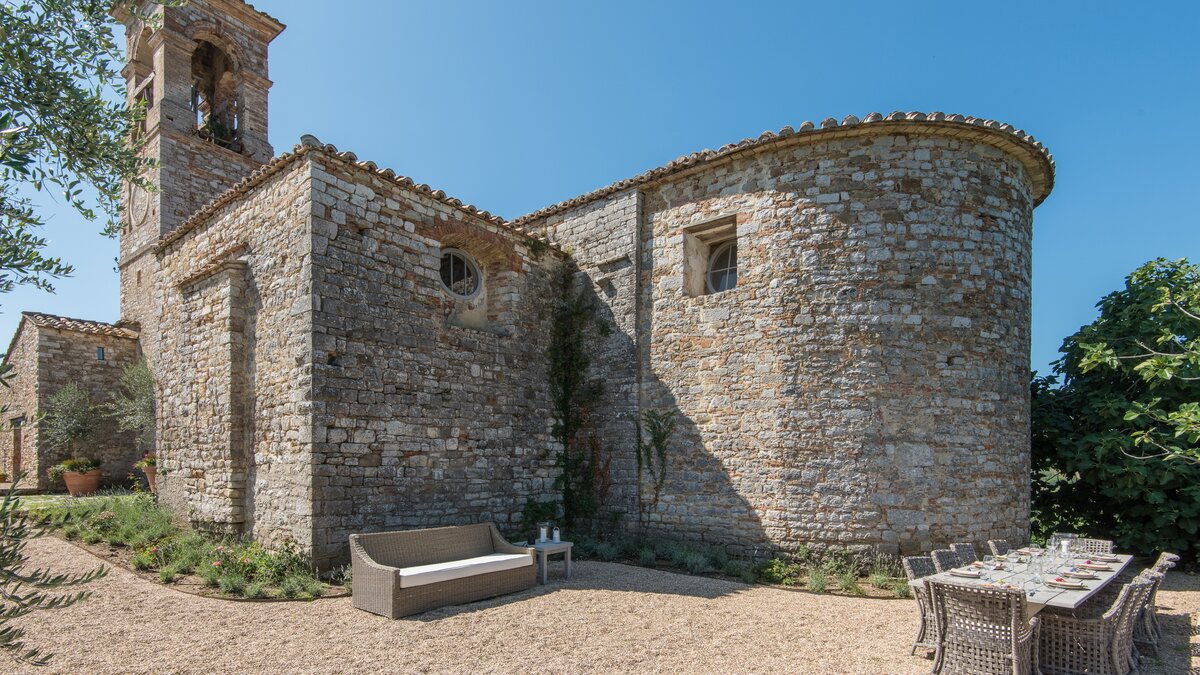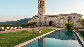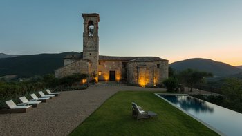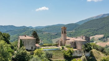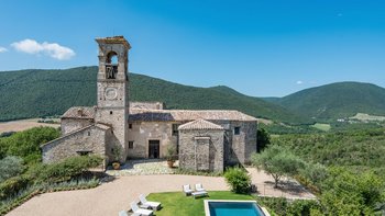 Dieses historische Haus in Umbrien ist ein prächtiger Umbau einer Kirche und eines Priesterhauses und bietet einen atemberaubenden Panoramablick und einen ausgezeichneten Concierge-Service.