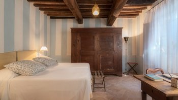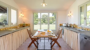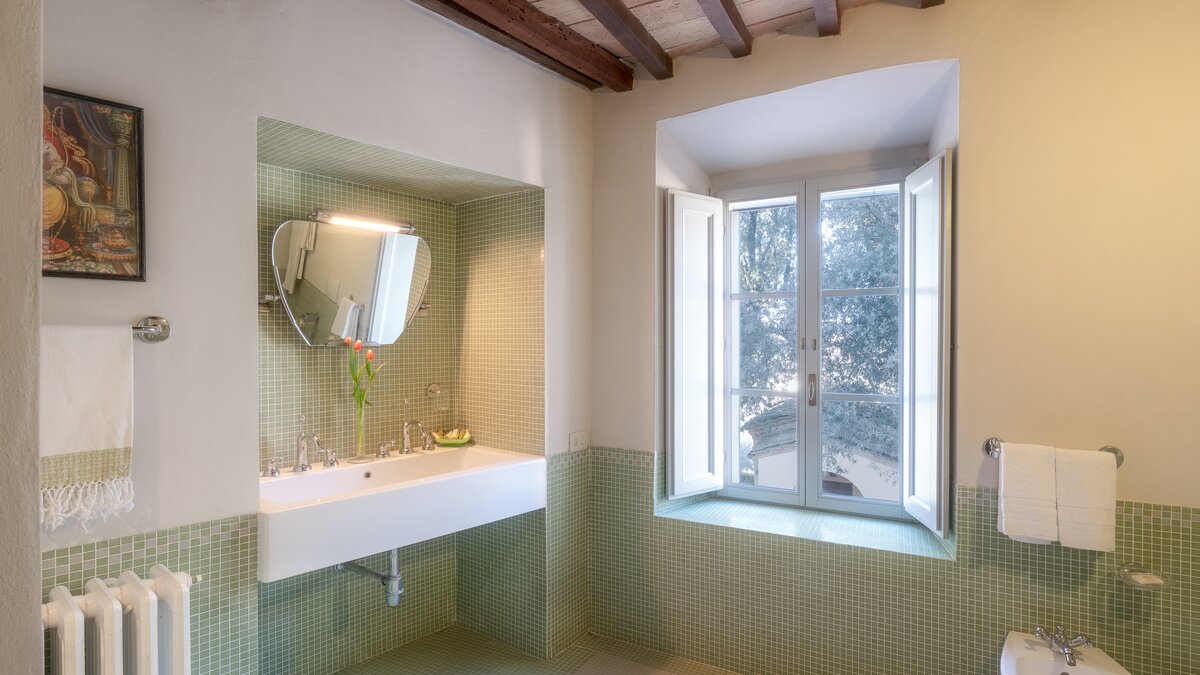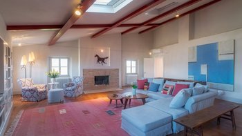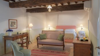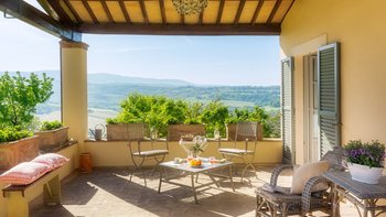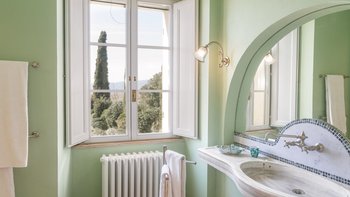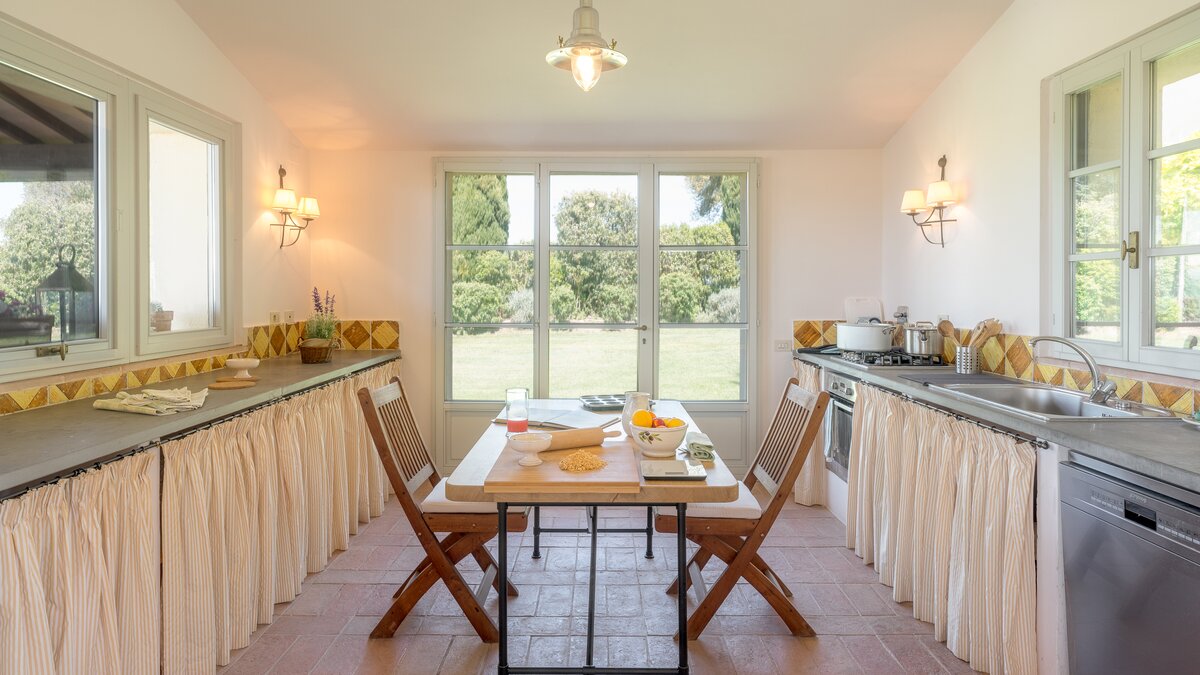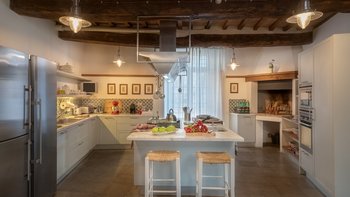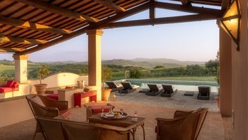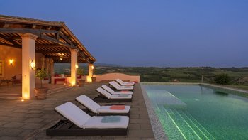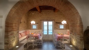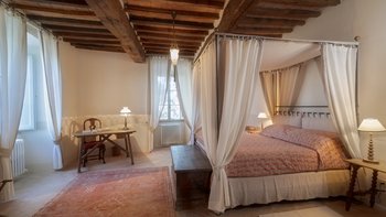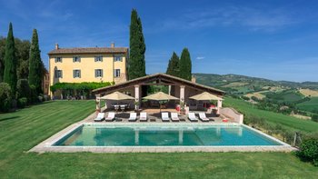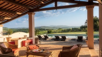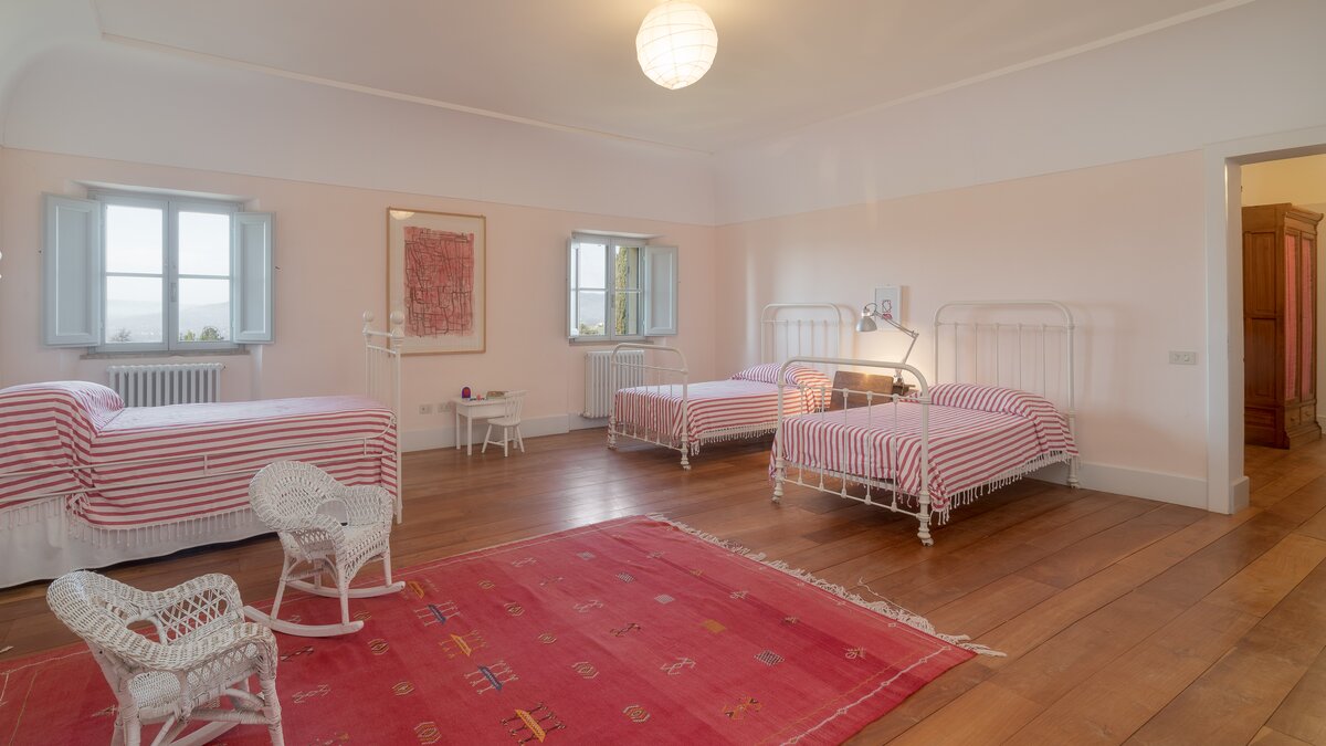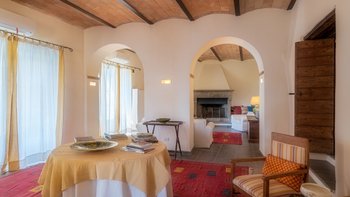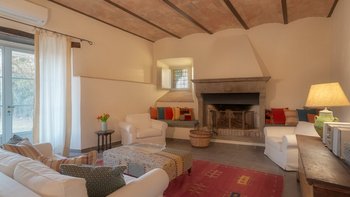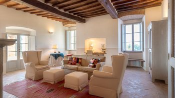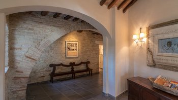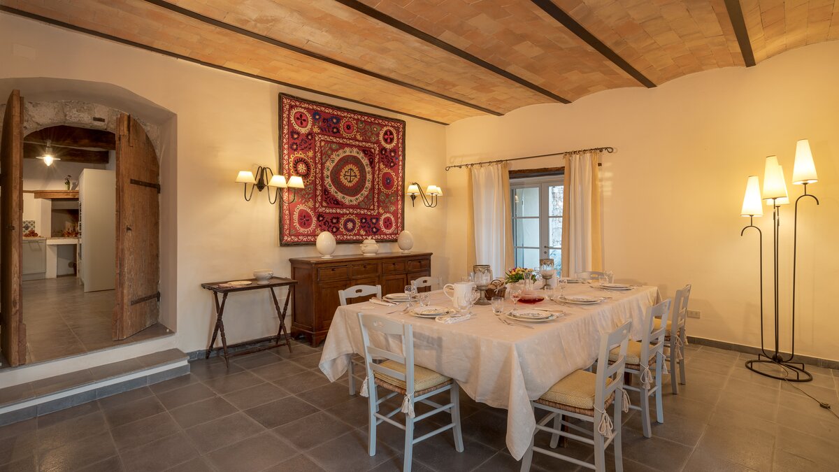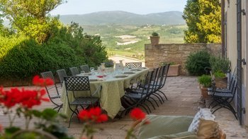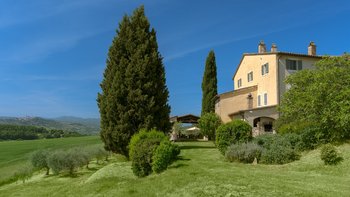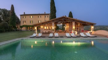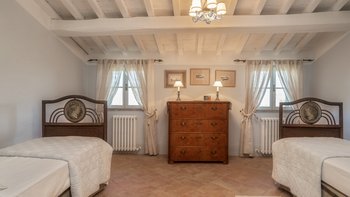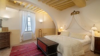 Das Domus Petra befindet sich auf einem Hügel mit Panoramablick auf die weitläufigen Hügel und Täler, wobei in der Ferne die mittelalterliche Bergstadt Todi deutlich zu sehen ist. Deren Anwesen stammt aus dem 15. Jahrhundert und beherbergte ursprünglich die Kirche San Silvestro. Deren Villa wurde elegant restauriert und bewahrt ihren Charme durch die ursprünglichen Kirchenmauern und Bögen. Jedes der Zimmer hat einen einzigartigen Stil, vom Hauptschlafzimmer aus dem 16. Jahrhundert bis zum Kamin aus dem 19. Jahrhundert im Erdgeschoss. Nach der Ankunft betreten die Gäste das Haupthaus über den Portikus. Der Haupthof bietet einen schönen Außenbereich und eine große Terrasse mit bequemen Sitzgelegenheiten im Freien, die sich vom Wohnbereich bis zum Essbereich erstreckt. Das Erdgeschoss verfügt auch über eine hervorragend ausgestattete und geräumige Küche und Speisekammer. Es gibt zwei Schlafzimmer, die von außen über den Portikus zugänglich sind, eines über dem anderen. Im Obergeschoss befinden sich sechs weitere schöne Schlafzimmer mit Bad. Des Hauptschlafzimmer ist eine besonders elegante Suite mit Sitzbereich, großem Bad und Schlafzimmer mit Himmelbett. Auf der zweiten Etage ist der Medienraum ideal für Indoor-Spaß, mit einem großen Plasma-TV und Soundsystem, Kamin, Oberlichtern und Tischtennis. Zwei schöne Schlafzimmer mit Bad vervollständigen diese Etage.