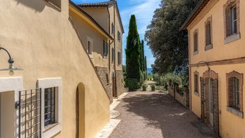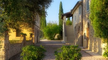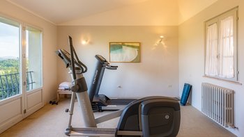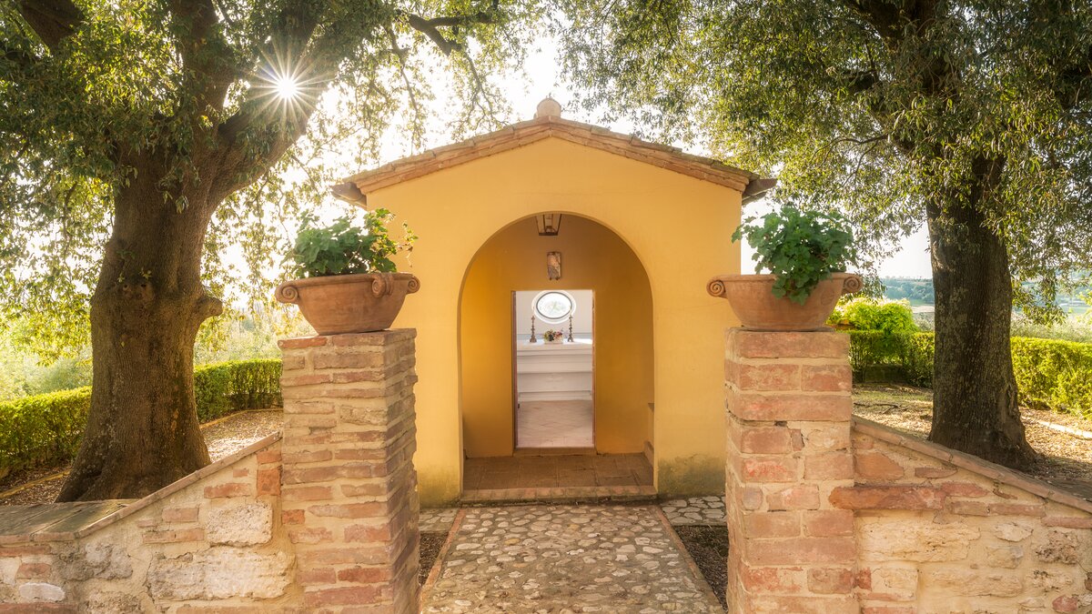 Das exquisit gestaltete Interieur wird durch ein wunderschönes weitläufiges Grundstück ergänzt. Der große PRIVATER POOL wird von einem Poolhaus begleitet, das mit einer Sauna und einem gut ausgestatteten Fitnessraum und einer Außenküche gestaltet ist. Der Sonnendeck und der Portikus bieten weitläufige Bereiche zum Entspannen in der Sonne oder im Schatten. Der Loungebereich mit Blick auf den Pool bietet weitläufige Sitzgelegenheiten mit herrlichem Panoramablick auf Todi und einen Kamin. Dessen Highlight ist nach Sonnenuntergang, wenn das goldene Licht die Zypressen und Olivenbäume betont. Des Anwesen umfasst auch eine private Kapelle auf dem Grundstück.