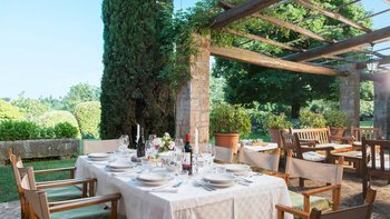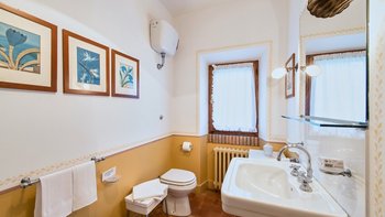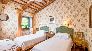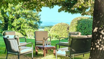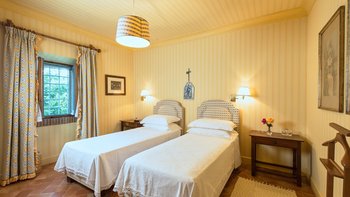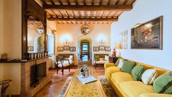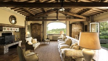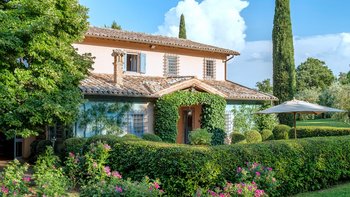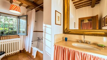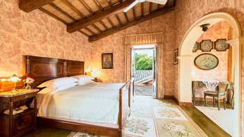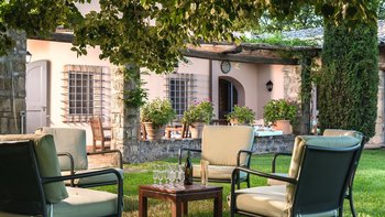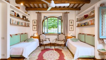 Auf Rasenflächen direkt unterhalb des Hauses verfügt La Casetta über einen eigenen 16-Meter-Pool, der von einer Pergola am Pool überblickt wird, während sich eine mit Glyzinien beschattete Terrasse entlang der gesamten Villa erstreckt, um Sitz- und Essbereiche im Freien zu schaffen. Sehr einladend eingerichtet sind eine Frühstücksküche, ein Hauptwohnzimmer mit Dachsparren, ein riesiges Panoramafenster und Doppeltüren zum Garten. Dessen Raumaufteilung ist ideal für zwei Familien oder Freunde, die zusammen reisen. Es gibt zwei geräumige Doppel- oder Zweibettzimmer an beiden Enden des Erdgeschosses. Auf der ersten Etage gibt es ein weiteres sehr komfortables Zweibett- oder Doppelzimmer und eine luxuriöseund geräumige Master-Suite mit Panoramablick. Alle sind traditionell mit edlen Stoffen und antiken Stücken eingerichtet, und die von Natur aus entspannende Atmosphäre könnte durch einen Kochservice verstärkt werden.