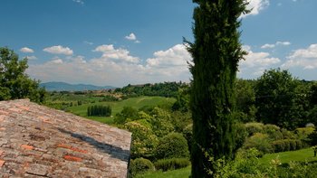 Umgeben von gepflegten Gärten mit Rasen, Sträuchern und Bäumen, ist dies eine schöne Villa im Herzen der umbrischen Sehenswürdigkeiten. Fabelhafte Ausblicke reichen über Olivenhaine und Weinberge bis hin zu weit entfernten Hügeln und Bergen und unterstreichen die ruhige ländliche Lage von Orvieto. Dessen Restaurants, Geschäfte und der verzierte Dom von Orvieto sind nur 5 km entfernt, und eine 45 km lange Autofahrt bringt das mittelalterliche Todi in Reichweite. In der unmittelbaren Umgebung gibt es Geschäfte und Reitställe im nahe gelegenen Porano und einen fünfhundert Meter entfernten Tennisplatz mit Flutlicht, der sich mit der Schwestervilla La Crete teilt.