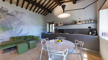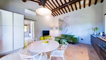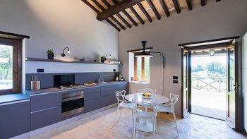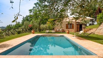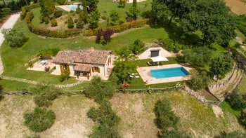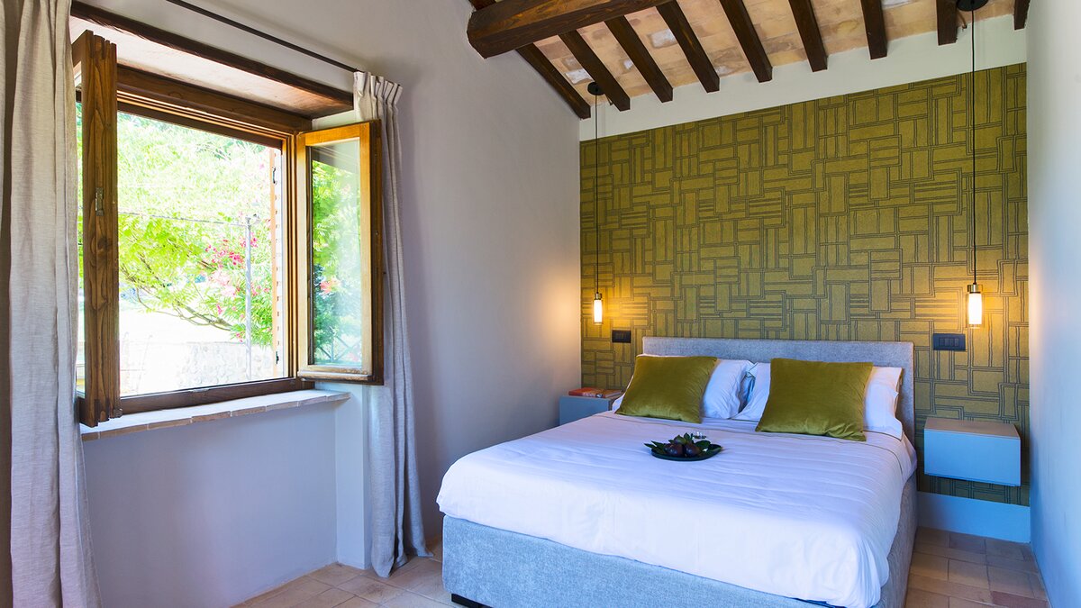Diese entzückende Villa, umgeben von schönen Naturgärten, wurde aus lokalem Stein und traditionellen Materialien erbaut, mit antiken Dachziegeln, Kastanienbalken, Türen, Fensterrahmen und Fensterläden. Deren Anwesen ist zu einem hohen Standard mit traditionellen Techniken fertiggestellt, mit neu eingerichteten Zimmern in sehr komfortablem, zeitgenössischem Stil. Denen Möbel sind von Top-Qualität, von bekannten lokalen oder internationalen Marken bezogen, und die Vorhangmaterialien und stammen aus den berühmten Leinengeschäften von Farfa aus der Region. Deren Küche hat eine sehr moderne Atmosphäre, aber mit allem Komfort für einen erholsamen Aufenthalt, und es gibt und gibt einen Esstisch sowie mehrere Essbereiche im Freien. Die überdachte, von Gärten umgebene Terrasse bietet einen perfekten Frühstücksort und es gibt auch einen Gemüsegarten. Der attraktive Poolbereich bietet Privatsphäre sowie einen atemberaubenden Blick auf die Landschaft. Es gibt ein schönes Schlafzimmer mit Doppelbett und Blick auf den Pool und ein Duschbad.