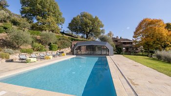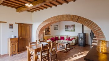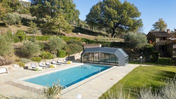 Etwas abseits der ausgetretenen Pfade und abgefedert von den Feldern, Höfen und bewaldeten Hängen der nördlichen Hügel Umbriens, ist dies ein wunderbarer Ort, um sich zu einem entspannten Lebensrhythmus zu entschleunigen. Der Weg zum Haus führt durch die Wälder und führt zu einem verlockenden Blick auf das Trasimenische Meer, das nur 20 km von Le Caselle entfernt liegt. Bei der Ankunft in der Villa wurde den Gästen eine leichte Mahlzeit zubereitet, und für die Dauer des Urlaubs konnte ein Kochservice hinzugezogen werden. Deren Villa, ein ehemaliges Bauernhaus, das heute von Gärten mit Rasen umgeben ist, wurde mit komfortabler Einfachheit restauriert, ganz im Einklang mit den Holzbalkendecken und der idyllischen Umgebung. Aber Ergänzungen wie WLAN und Satellitenfernsehen sind total aus dem 21. Jahrhundert, die Küche im Landhausstil ist gut ausgestattet mit modernen Geräten und ein Pavillon auf dem Grundstück bildet ein Wohnzimmer im Freien neben einem großzügig bemessenen beheizbaren Swimmingpool. Lokale Geschäfte in Lisciano Niccone sind 8 km von der Villa entfernt, und Umbertide und Cortona sind leicht zu erreichen für Bars und Restaurants und.