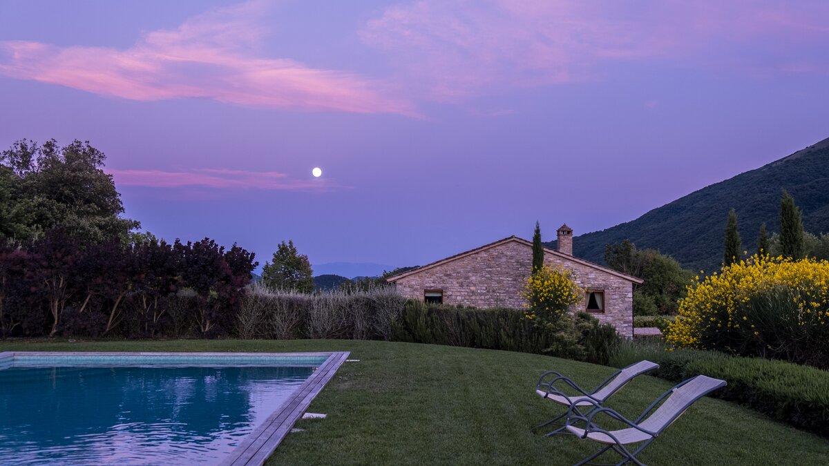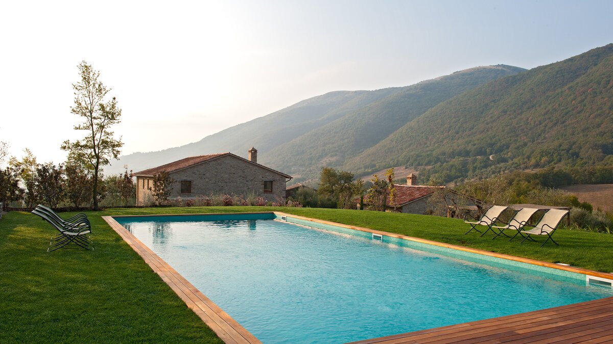 Ein sehr komfortables Landhaus in der Nähe des Golfplatzes Antognolla. Dieser Luxusvilla in den Hügeln Umbriens verfügt über einen großen beheizbaren Pool, wunderschöne Gärten und einen herrlich weiten Blick.