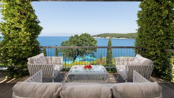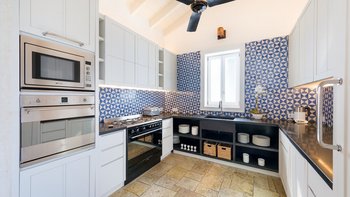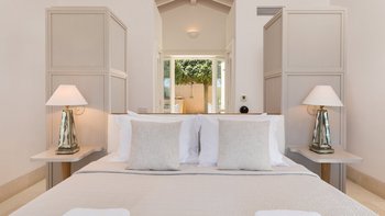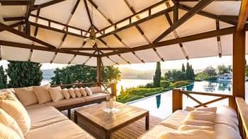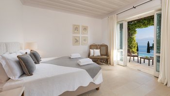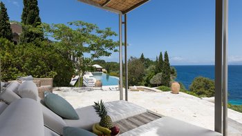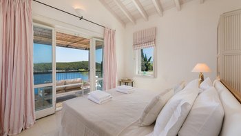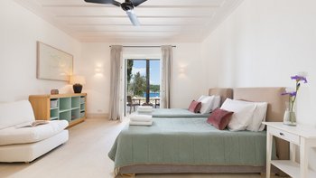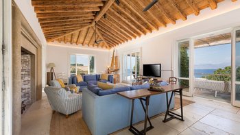 Das schicke Interieur des Amarea ist ein hervorragender Ort für eine Gruppe von Freunden und umfasst ein wunderschönes Wohnzimmer mit einem riesigen Steinkamin und vier Schlafzimmer, von denen die Master-Suite einen privaten Innenhof mit Außendusche bietet. Dessen Haus teilt sich einen schönen Tennisplatz und einen privaten Steg mit seiner Schwestervilla OPHELIA. Restaurants und in Avlaki sind bequem zu Fuß erreichbar.